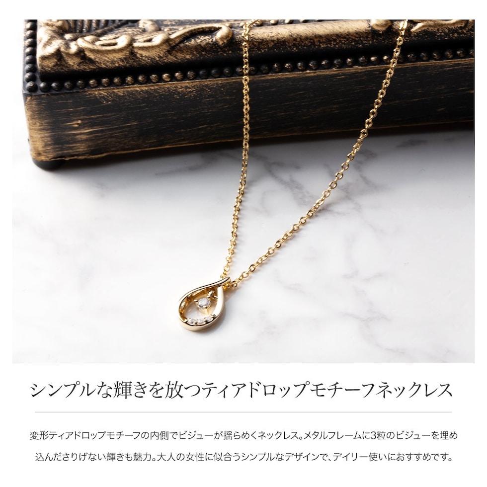 ネックレス 金属アレルギー ニッケルフリー レディース ショート チェーン ビジュー ティアドロップ cream dot ゆうパケット [ピンクゴールド_ワンサイズ]