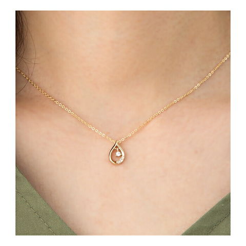 変形ティアドロップモチーフの内側でビジューが揺らめくネックレス。