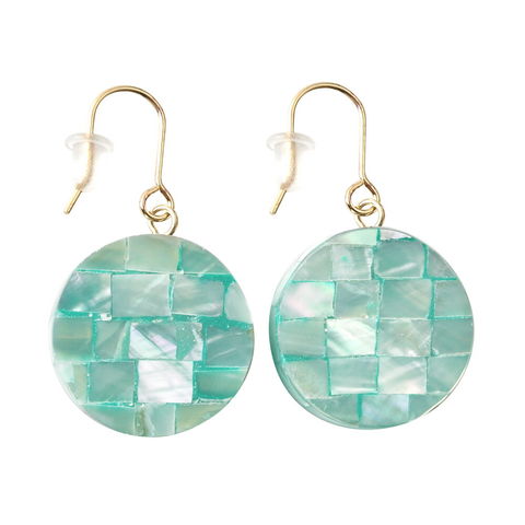 淡い色合いのカラーシャルを組み合わせたサークルピアス/イヤリング。どの角度から見てもしっとり艶めくモザイクシェルが大人上品な雰囲気を演出します。コーデのアクセントにぴったりな3色展開◎