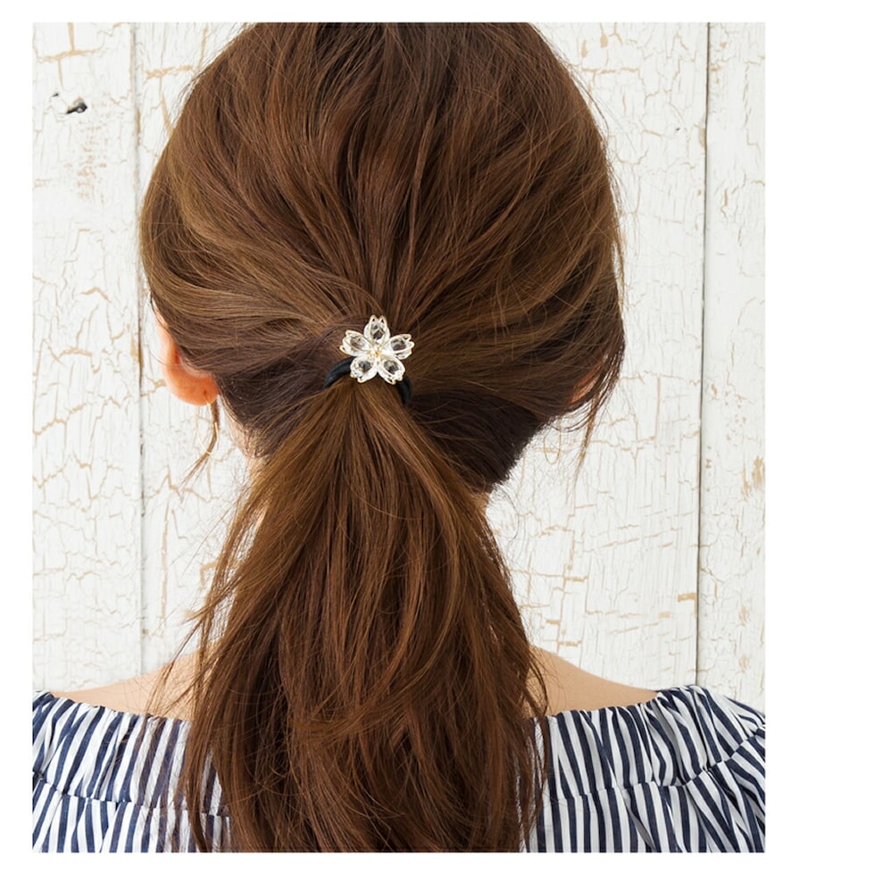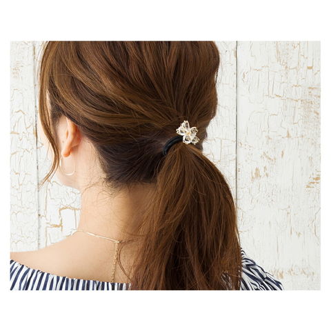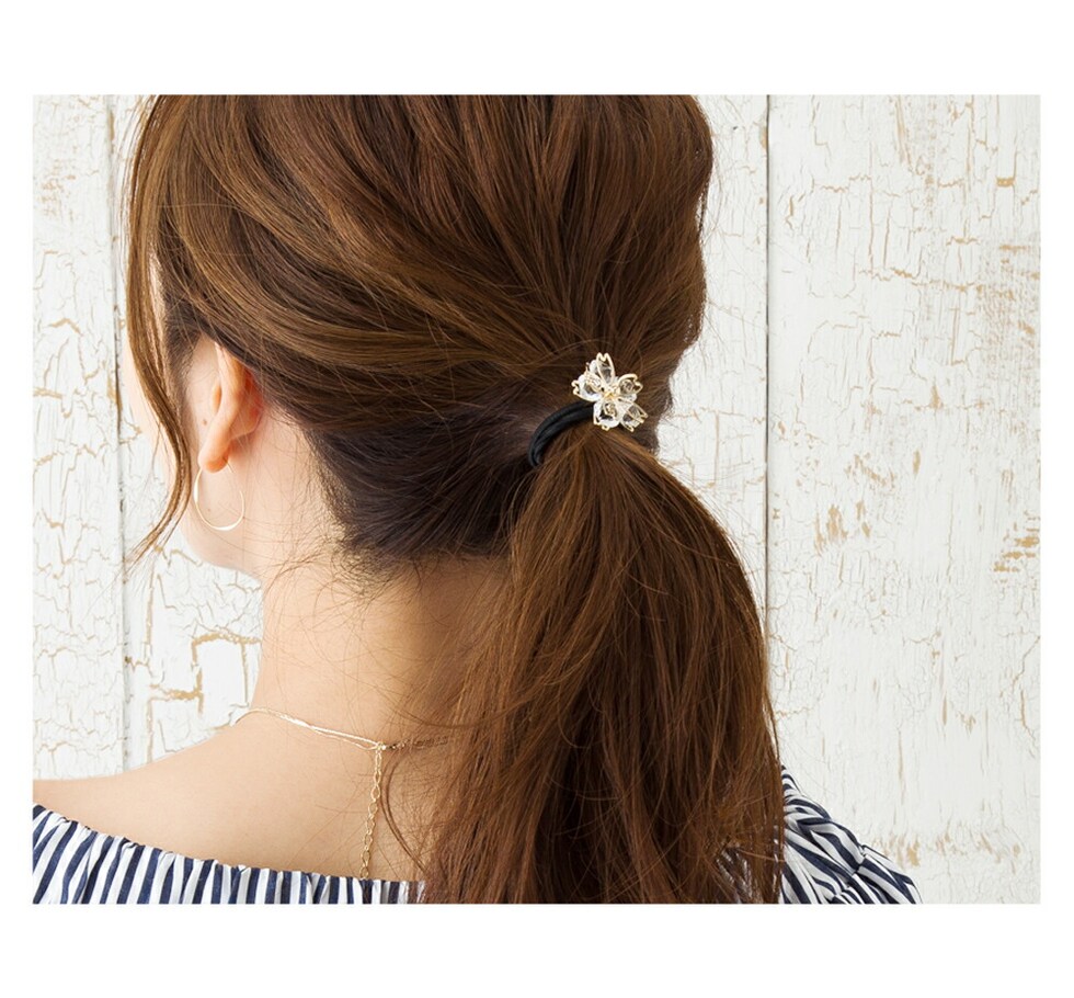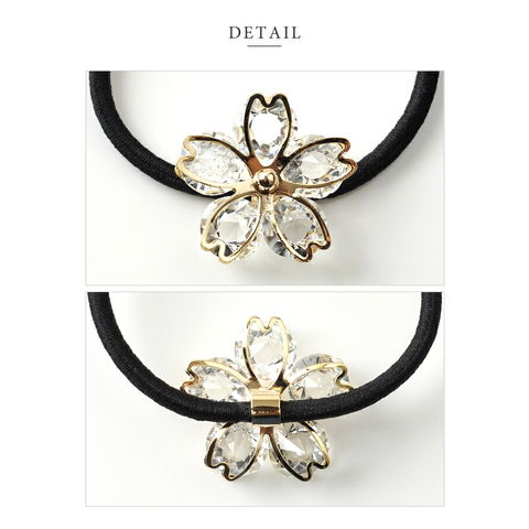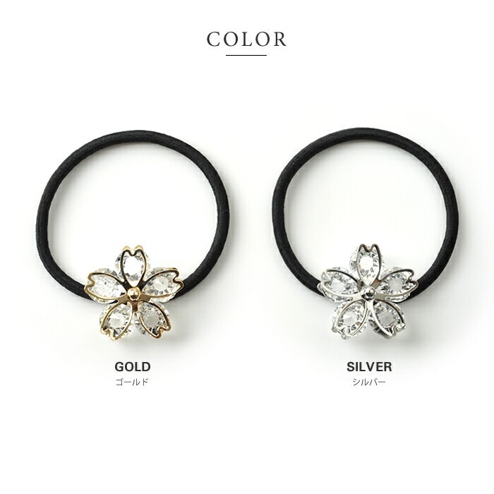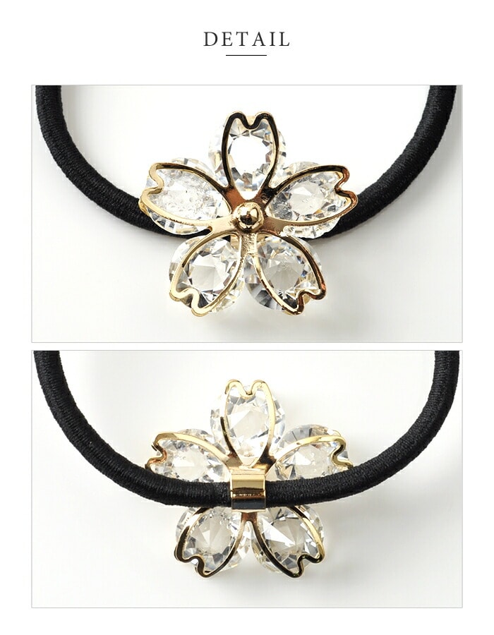 ヘアアクセサリー レディース ヘアゴム ヘアアクセ 花びら 桜 サクラ モチーフ クリアストーン まとめ髪 アレンジ 和装 小物 cream dot ゆうパケット [ゴールド_ワンサイズ]