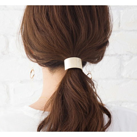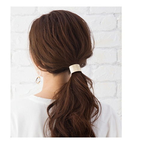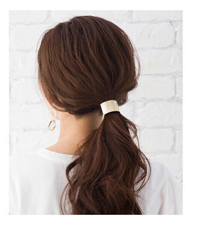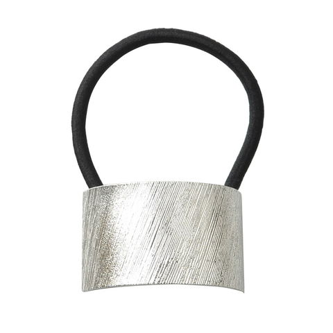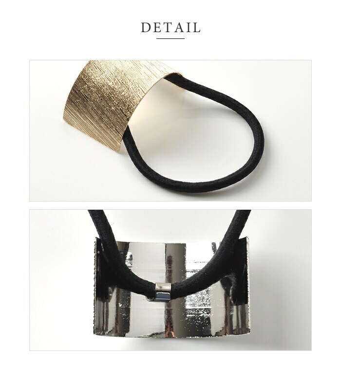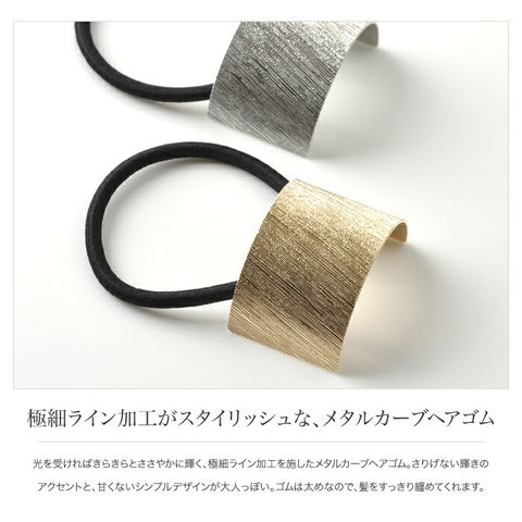 光を受ければきらきらとささやかに輝く、極細ライン加工を施したメタルカーブヘアゴム。