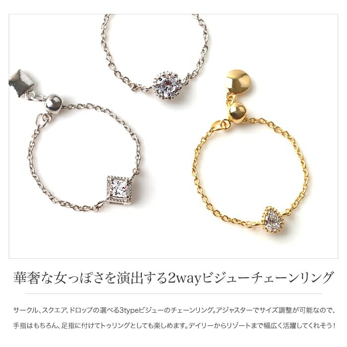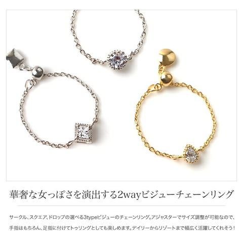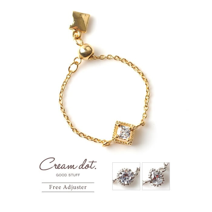 リング 指輪 レディース チェーンリング トゥリング フリーサイズ フリーアジャスター 調整可 ビジュー サークル スクエア ドロップ コーデ リゾート サンダル cream dot ゆうパケット [Aタイプ:ゴールド_フリーサイズ]