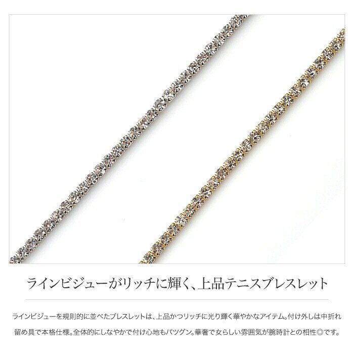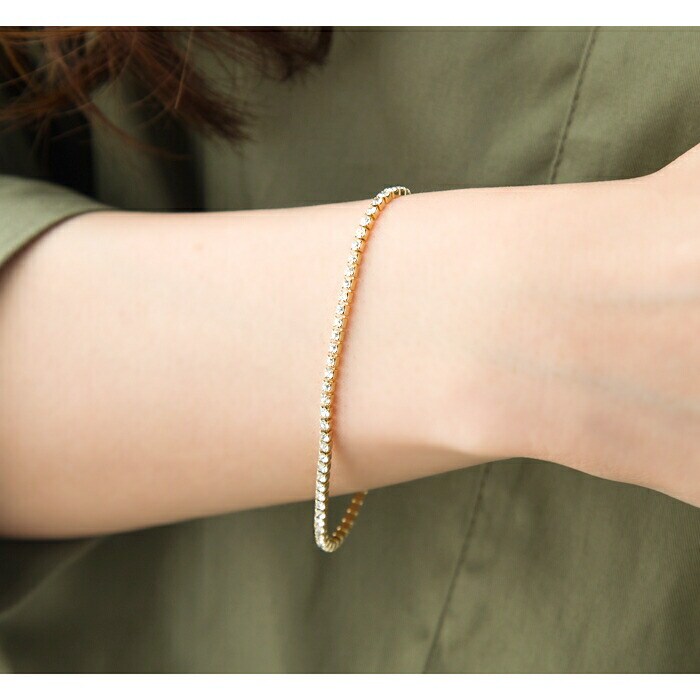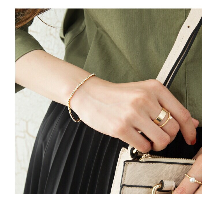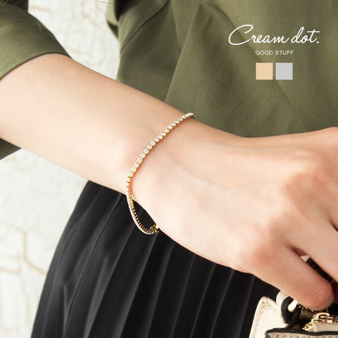 ブレスレット レディース テニスブレス ラインビジュー キュービックジルコニア 細身 重ねづけ め 小物 cream dot ゆうパケット [ゴールド_フリーサイズ]