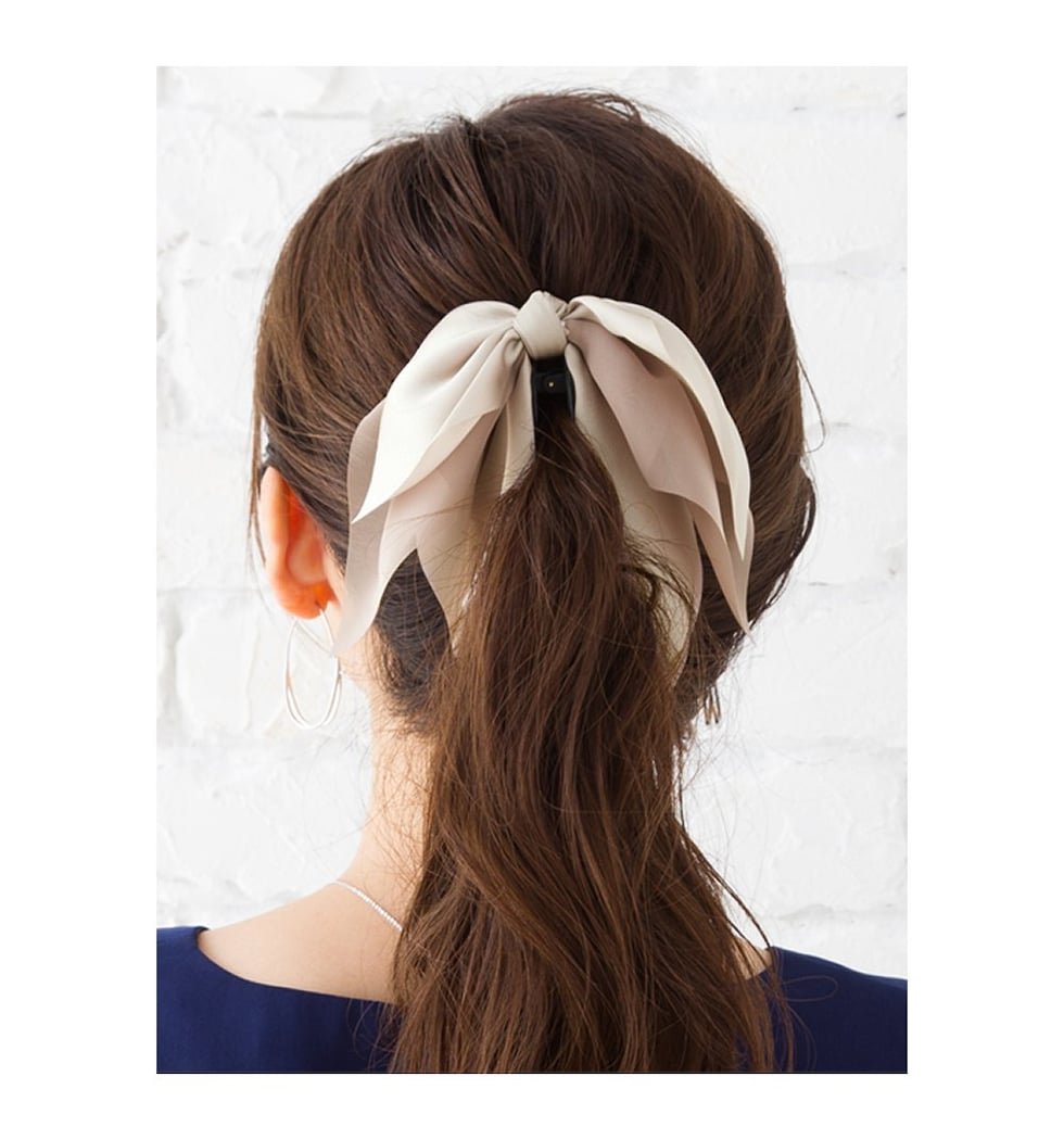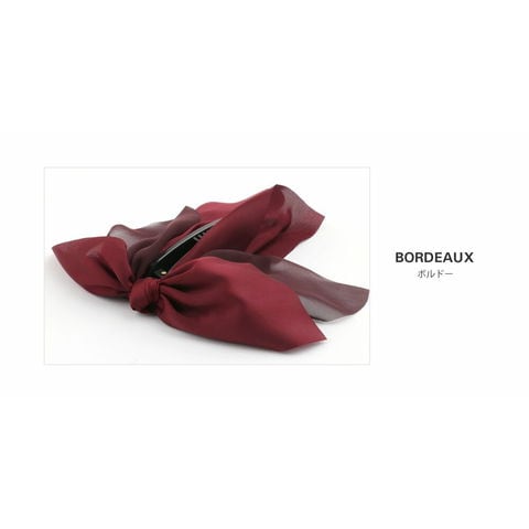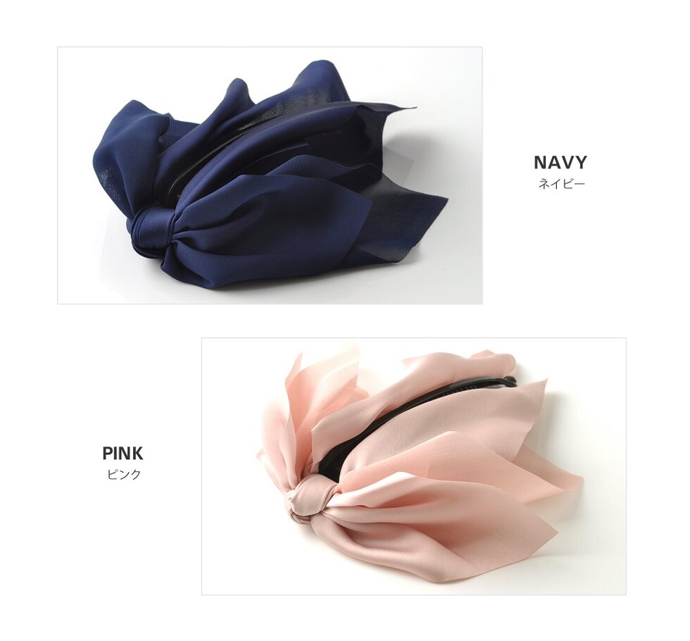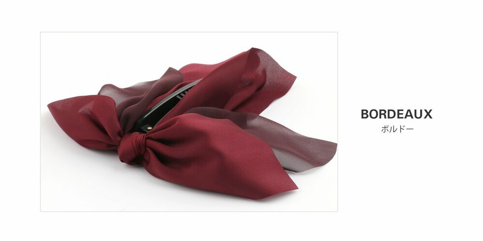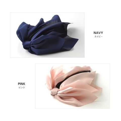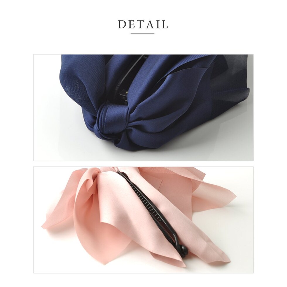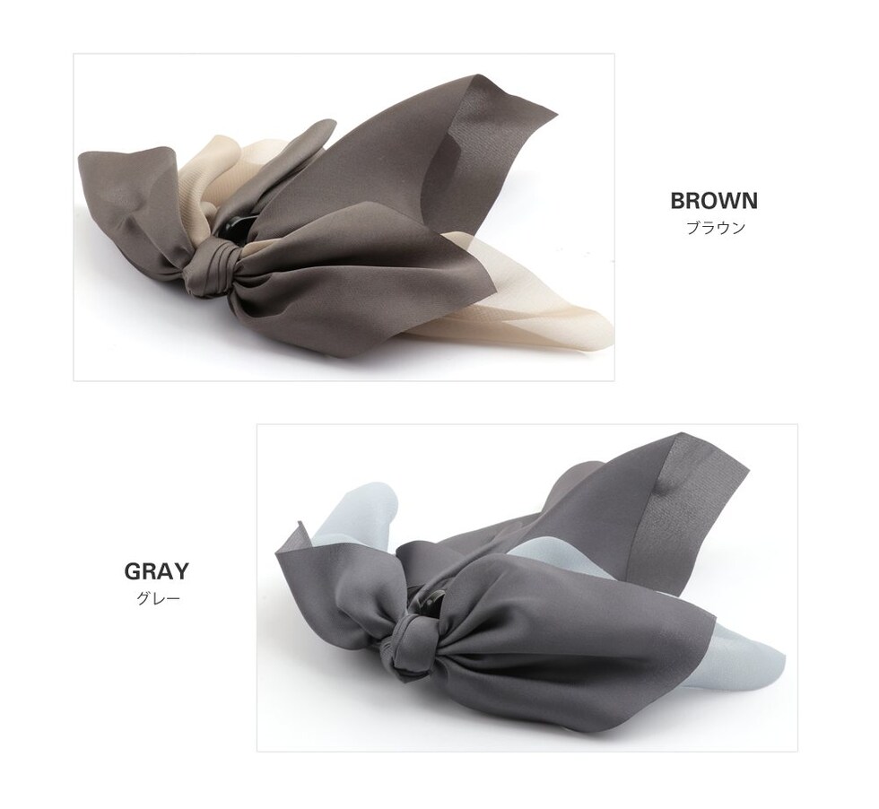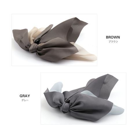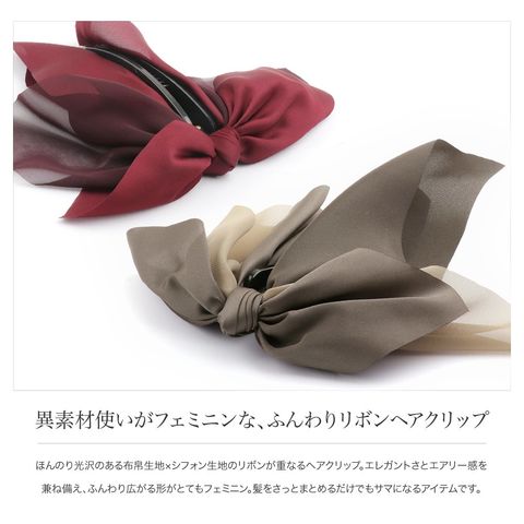 ほんのり光沢のある布帛生地×シフォン生地のリボンが重なるヘアクリップ。