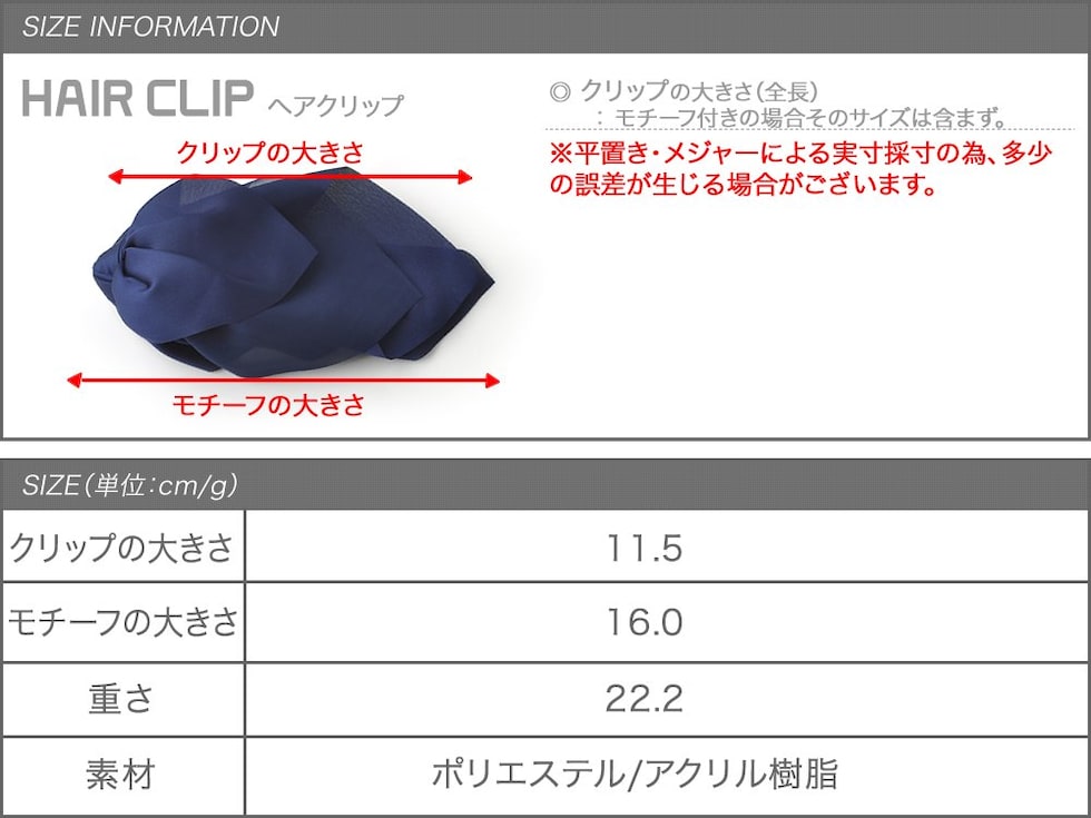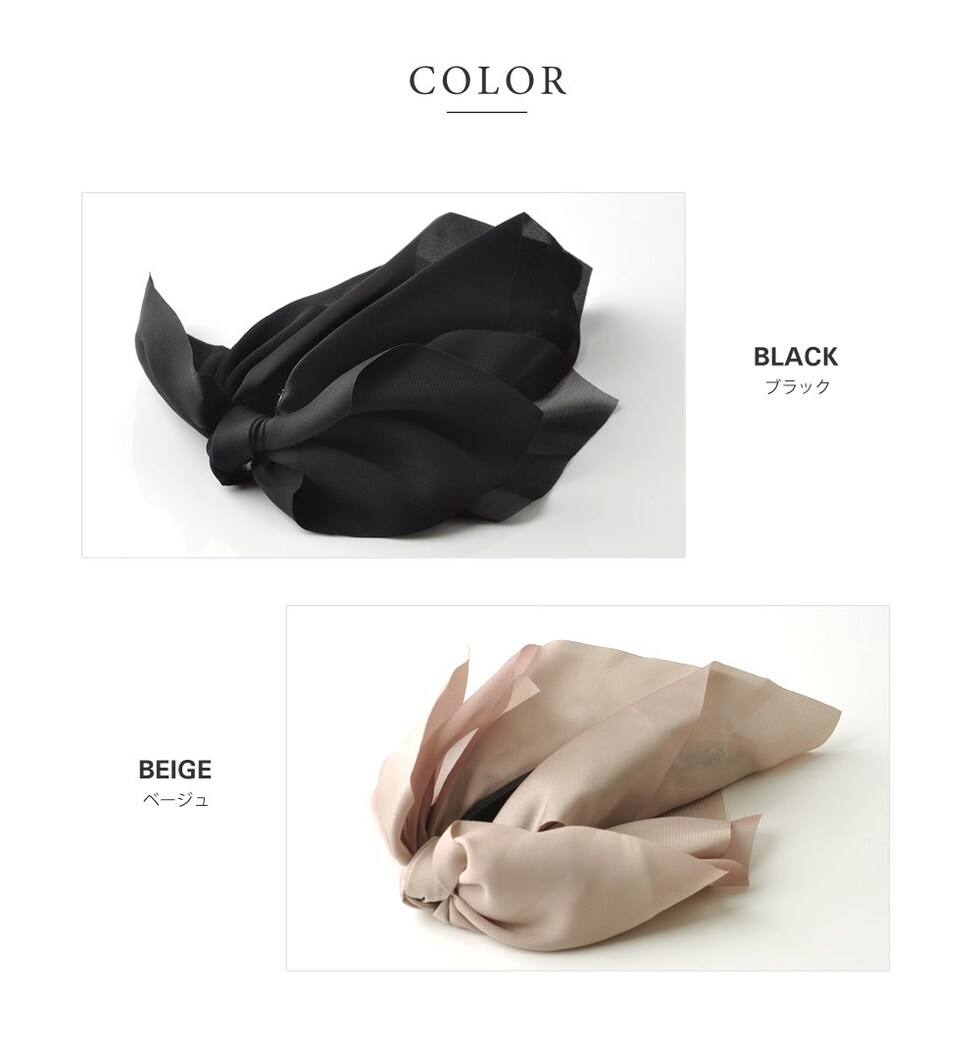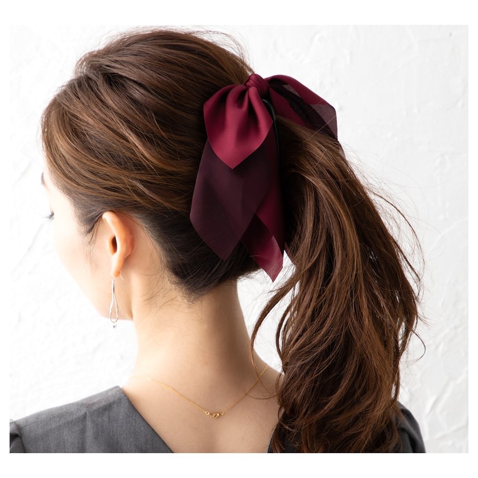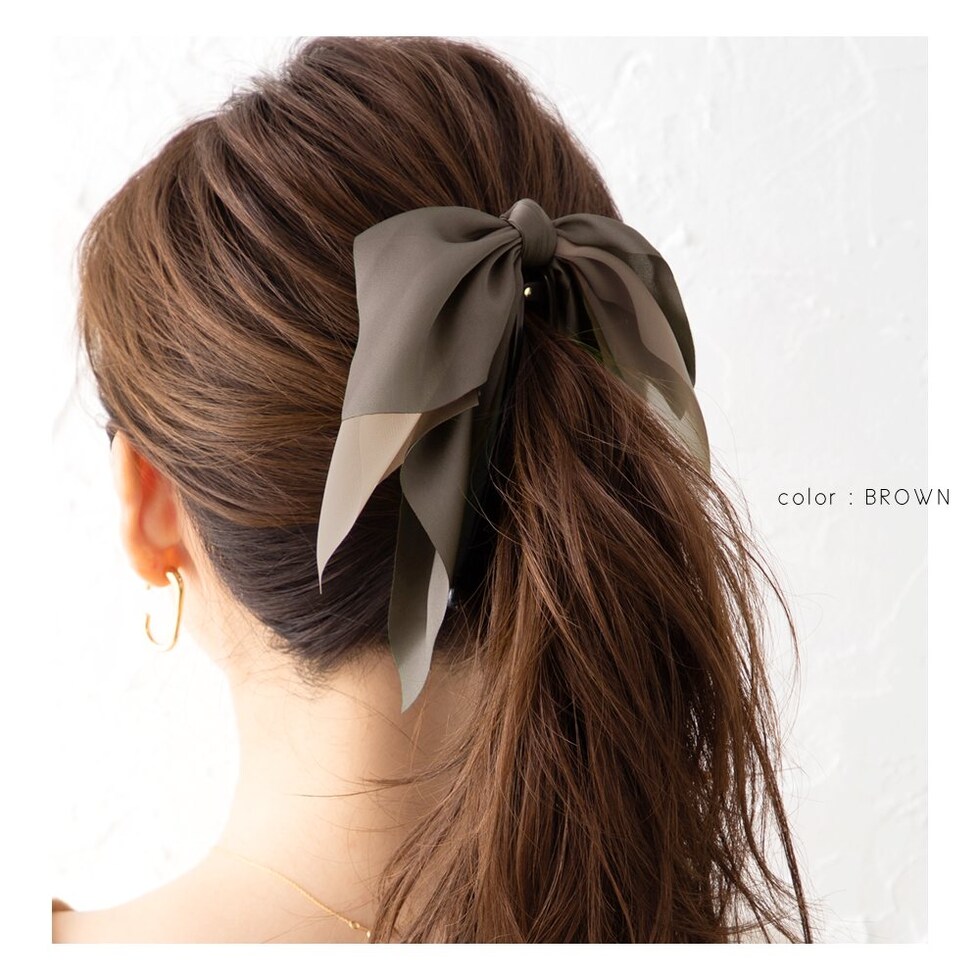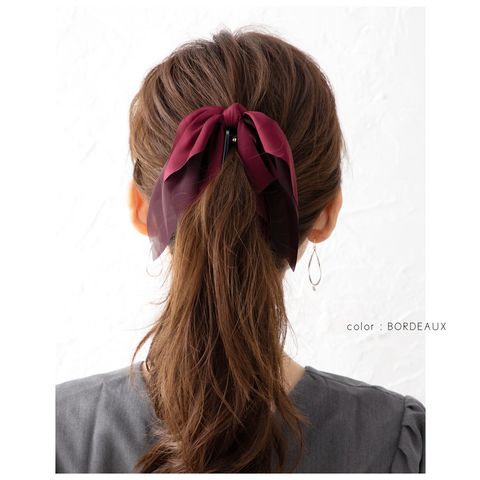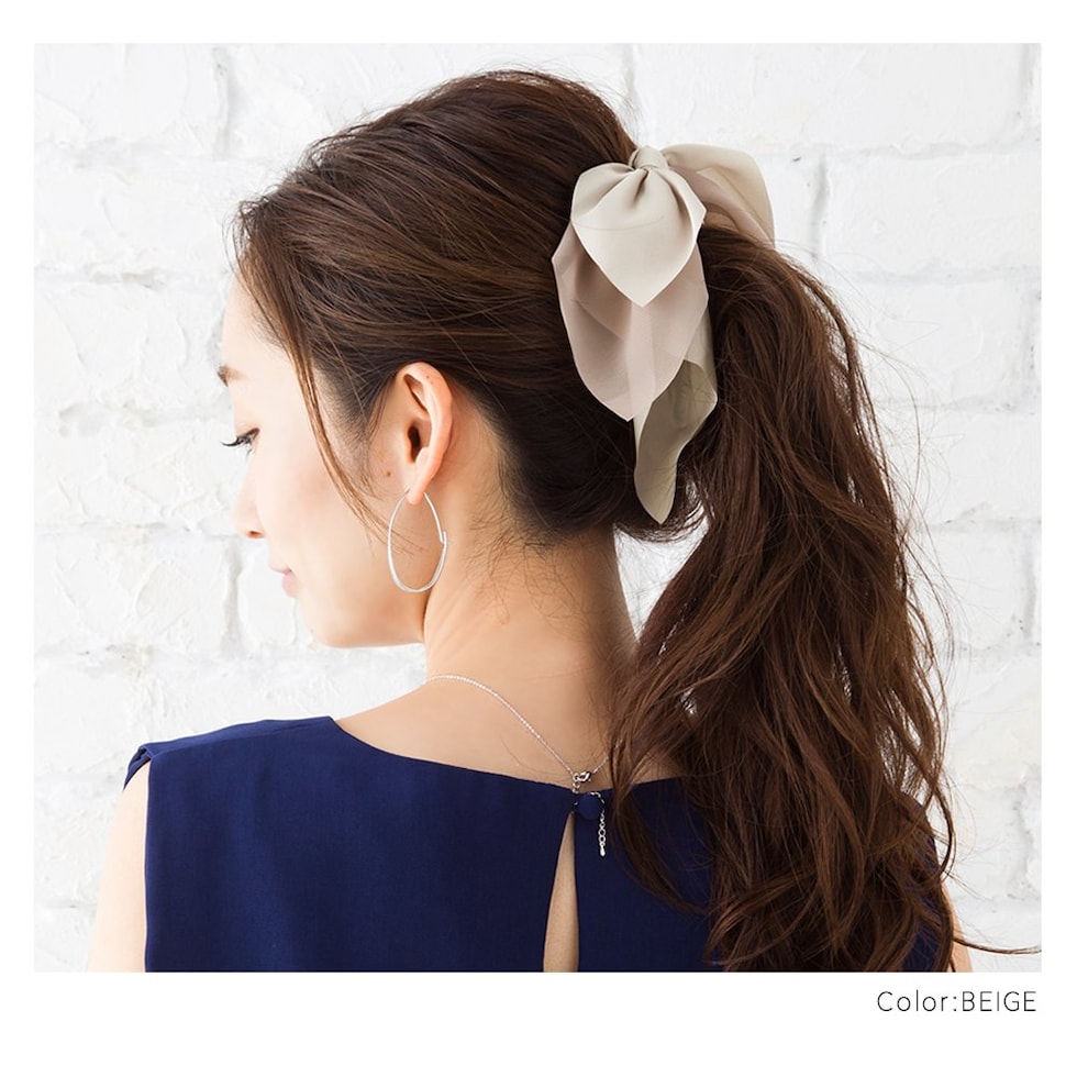 ほんのり光沢のある布帛生地×シフォン生地のリボンが重なるヘアクリップ。
