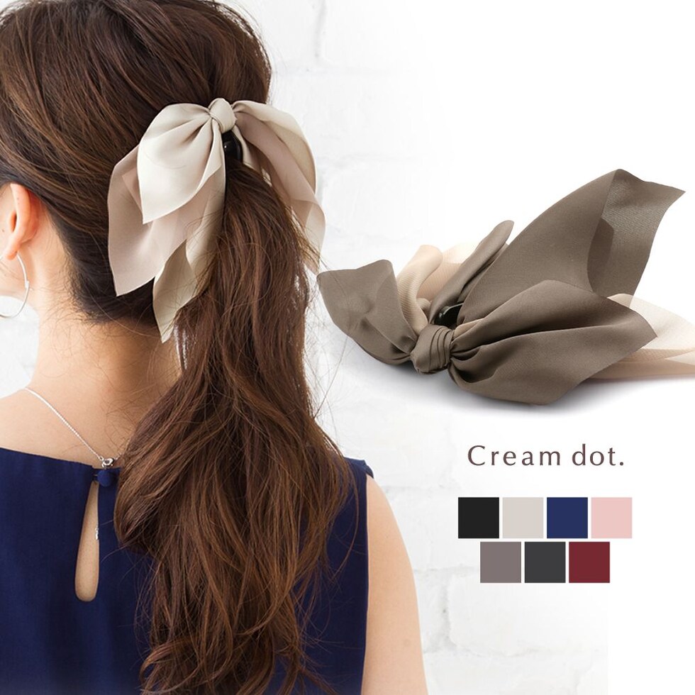 ヘアアクセサリー レディース バナナクリップ 大きめ しっかり リボン シフォン スカーフ ヘアクリップ ネイビー cream dot ゆうパケット [ブラック_ワンサイズ]