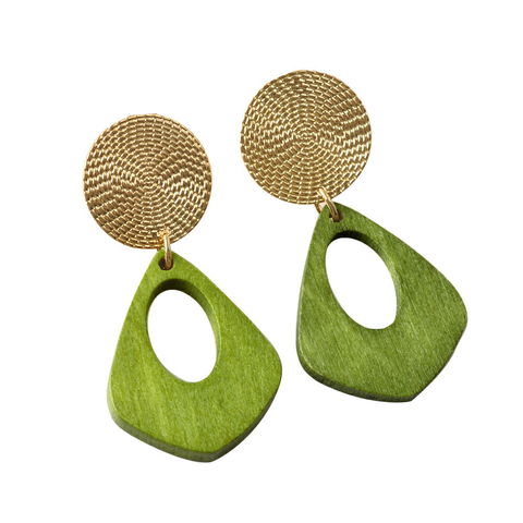 渦巻きプレートメタルとナチュラルなウッドを組み合わせた個性的なピアス/イヤリング。