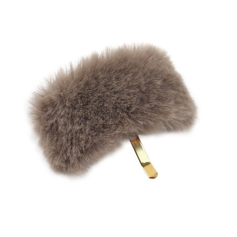 緩やかにカーブしたフェイクファーがヘアを包み込み愛らしく彩ります。結び目に差し込むだけでアレンジができるフック式ヘアアクセです。