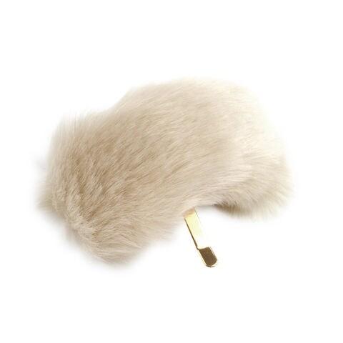 緩やかにカーブしたフェイクファーがヘアを包み込み愛らしく彩ります。結び目に差し込むだけでアレンジができるフック式ヘアアクセです。
