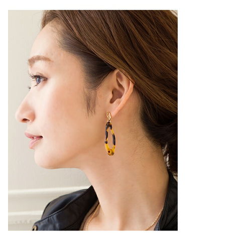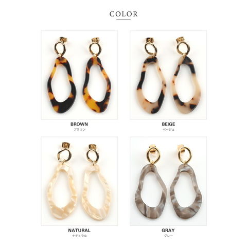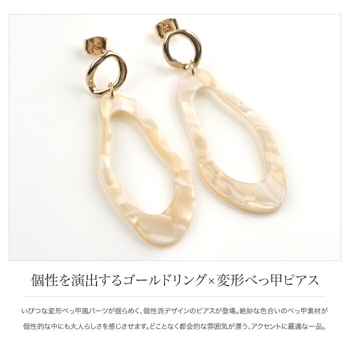 いびつな変形べっ甲風パーツが揺らめく、個性派デザインのピアスが登場。