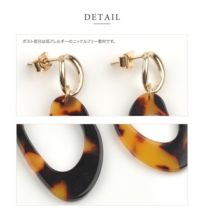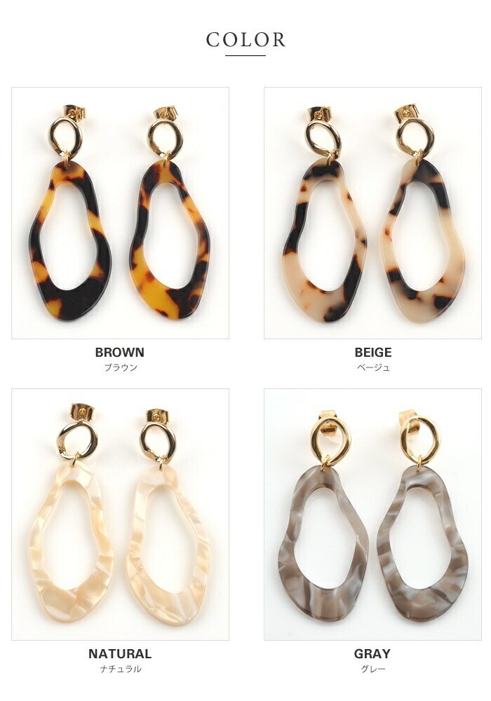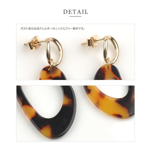 ピアス 金属アレルギー ニッケルフリー レディース 変形 大ぶり べっ甲風 べっこう風 ひねり 大きめ スタッド レトロ 揺れる ナチュラル cream dot ゆうパケット [ブラウン_ピアス]