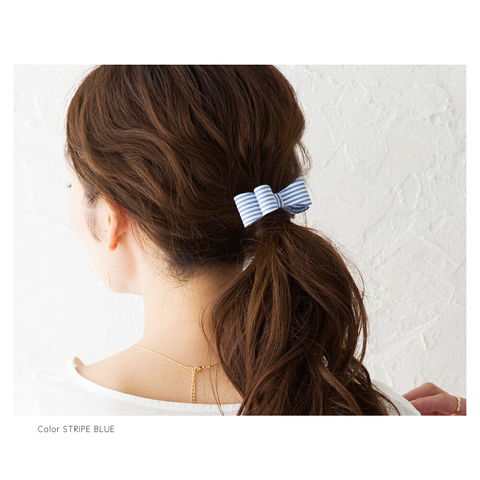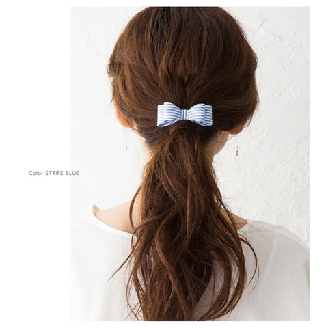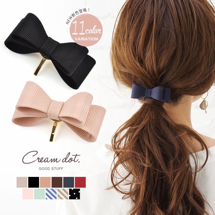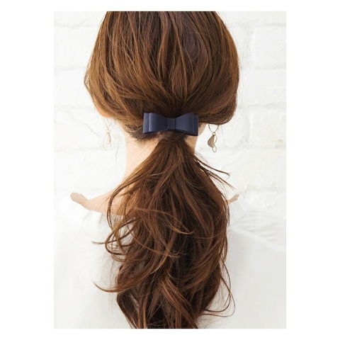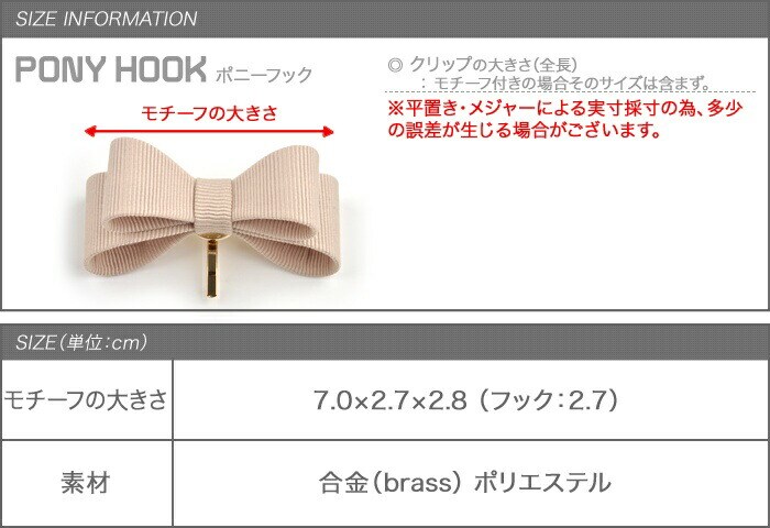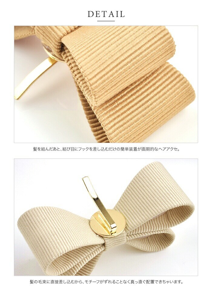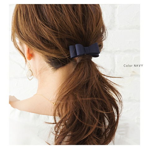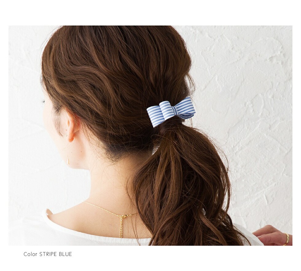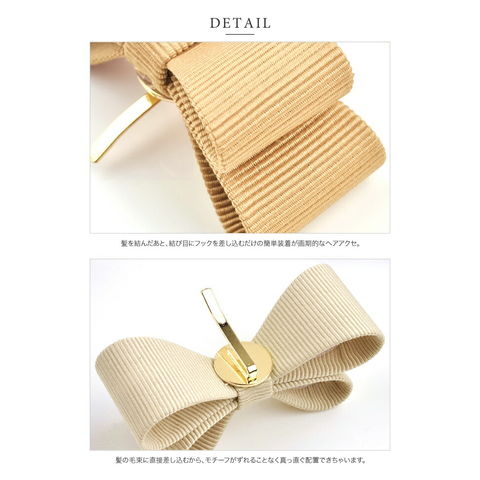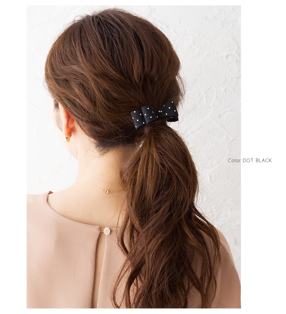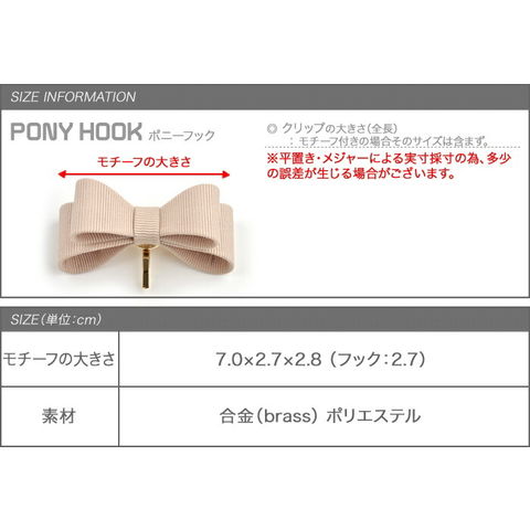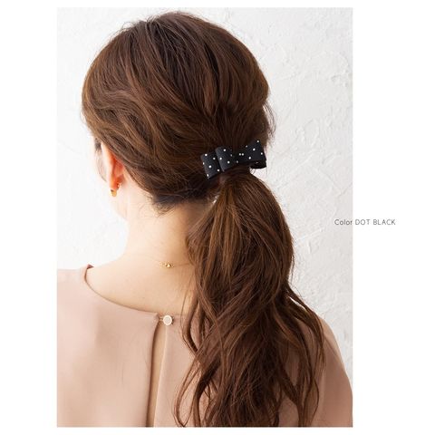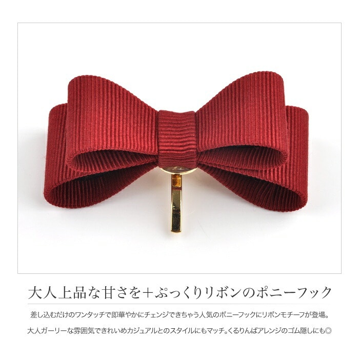 差し込むだけのワンタッチで即華やかにチェンジできちゃう人気のポニーフックにリボンモチーフが登場。大人ガーリーな雰囲気できれいめカジュアルとのスタイルにもマッチ。くるりんぱアレンジのゴム隠しにも◎