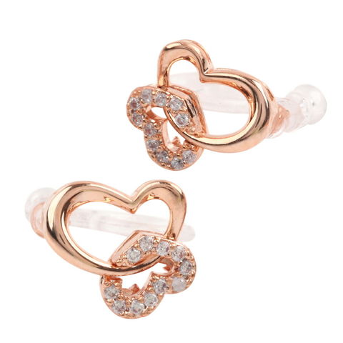 ピアス/イヤリング。ダブルのハートモチーフ&煌くビジューが