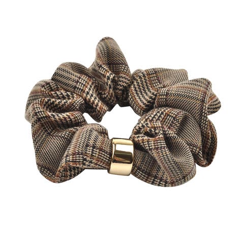 秋冬コーデにぴったりなグレンチェック柄のリボンシュシュ。ゴールドメタルがアクセントで、さっと簡単にまとめても見栄え良く華やかに仕上げてくれます。使わない時は手首やバッグに着けてアクセントにも◎