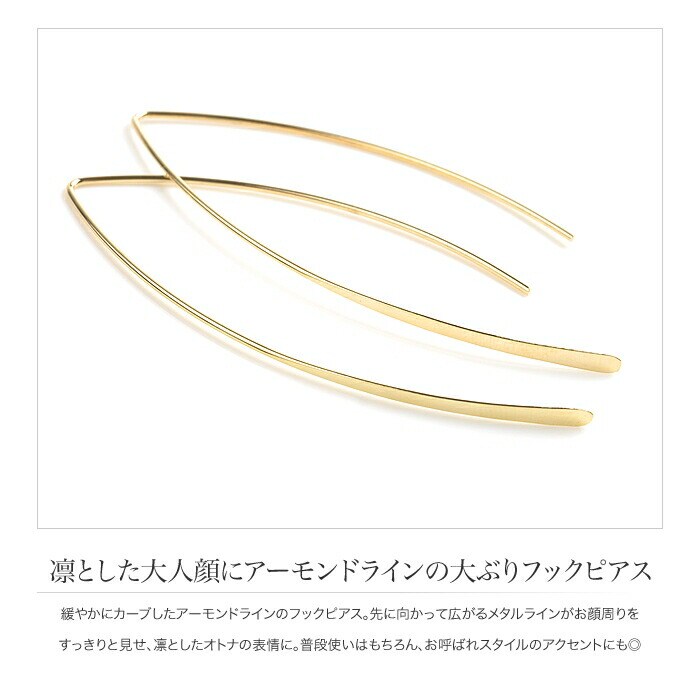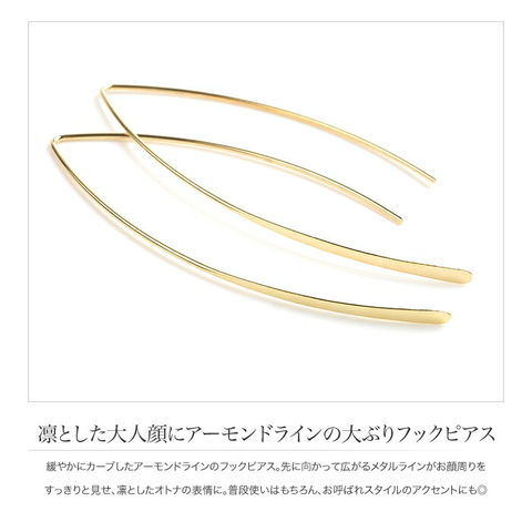 緩やかにカーブしたアーモンドラインのフックピアス。