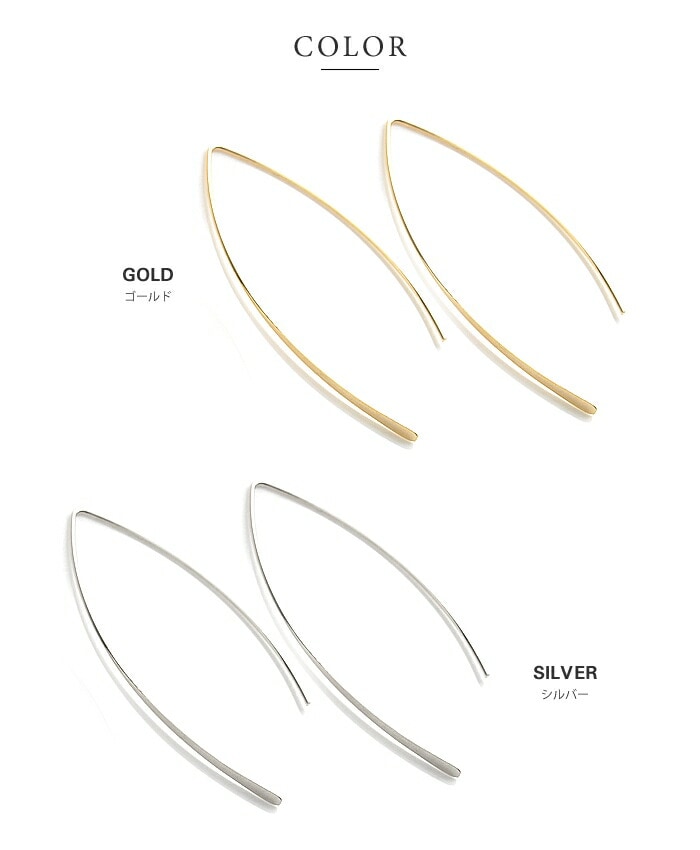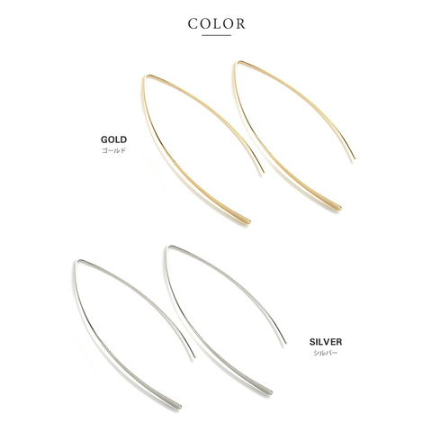 ピアス 金属アレルギー ニッケルフリー レディース フック 大ぶり バーフック ワイヤー カーブ アーモンドライン cream dot ゆうパケット [シルバー_ピアス]