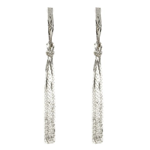 ベネチアンチェーンが揺れるたびにキラキラと輝くフリンジピアスは、顔周りを明るく華やかにしてくれる。キュっと結んだノットデザインがモダンな雰囲気を醸し出す、大人上品なアイテムです。