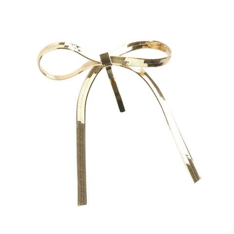 結んだようなリボンモチーフが大人可愛いポニーフック。スネークチェーンが光を受けてきらきらと輝き、グッとこなれた印象に。結び目に差し込むだけのワンタッチでヘアスタイルを即華やかに仕上げてくれるアイテムです。