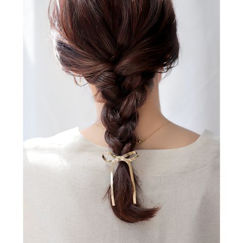 結び目に差し込むだけでの手軽さで、後ろ姿に派手過ぎない煌めきをプラス◎ピアスやネックレスなどのメタルアクセサリーとも相性抜群で高見えな印象に♪