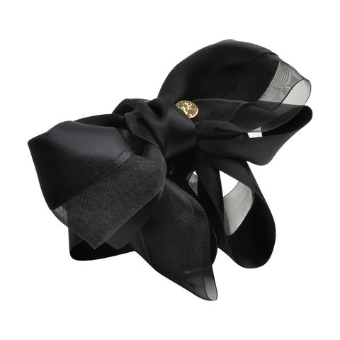 ヘアスタイルを大人フェミニンに飾るかさなるリボンのヘアバンス。艶やかなサテン生地とシフォンのリボンを3重に組み合わせた立体的なデザイン。程良いボリューム感のあるデイリーアイテムです。