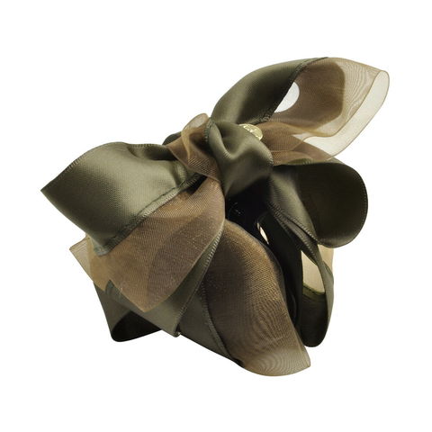 ヘアスタイルを大人フェミニンに飾るかさなるリボンのヘアバンス。艶やかなサテン生地とシフォンのリボンを3重に組み合わせた立体的なデザイン。程良いボリューム感のあるデイリーアイテムです。