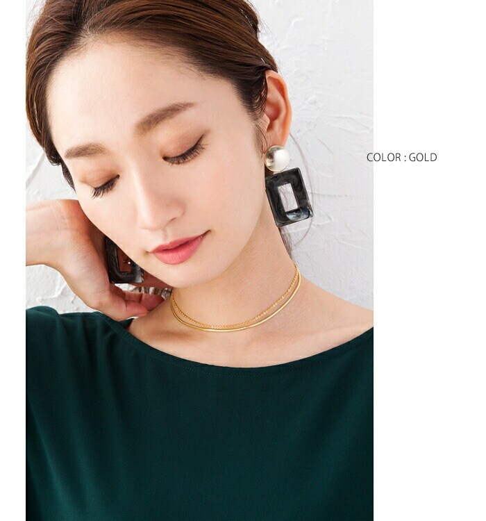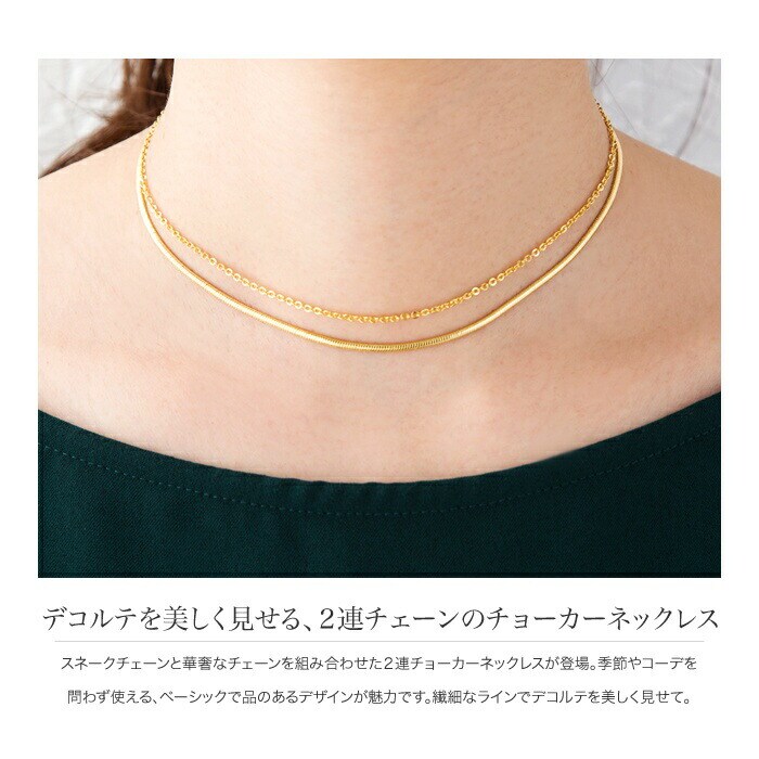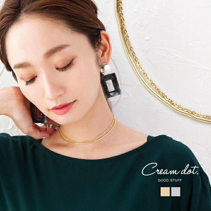 ネックレス レディース メタル チョーカー 2連 チェーン デコルテ美人 重ねづけ アクセサリー cream dot ゆうパケット [シルバー_ワンサイズ]