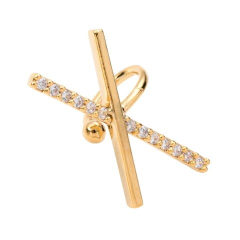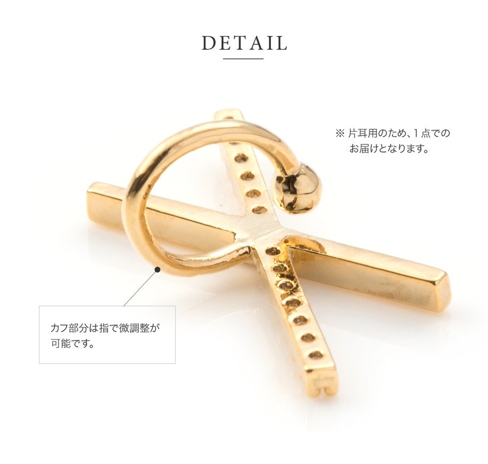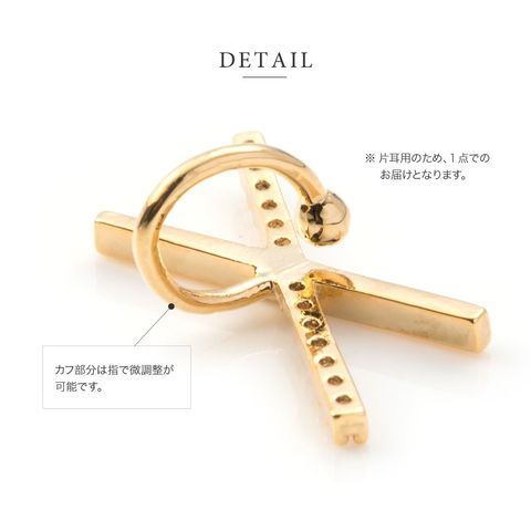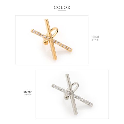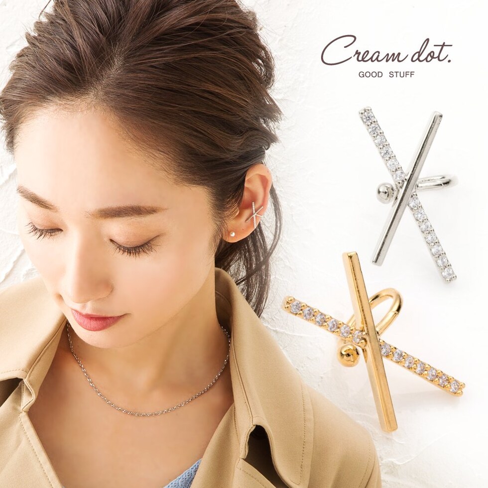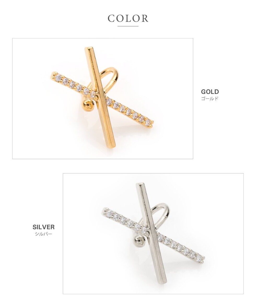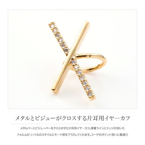 イヤーカフ レディース イヤーカフ イヤカフ 片耳用 重ねづけ 軟骨 はさむ 開けない ビジューバー クロス Xモチーフ メタル cream dot ゆうパケット [ゴールド_ワンサイズ]