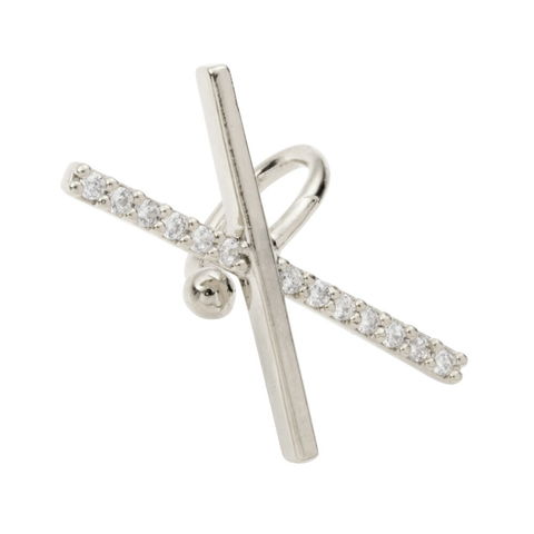 イヤーカフ レディース イヤーカフ イヤカフ 片耳用 重ねづけ 軟骨 はさむ 開けない ビジューバー クロス Xモチーフ メタル cream dot ゆうパケット [シルバー_ワンサイズ]
