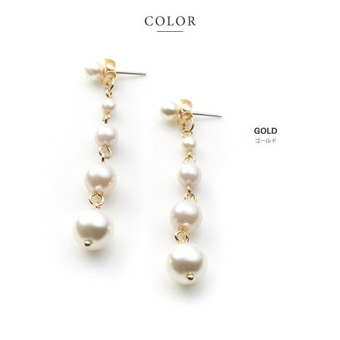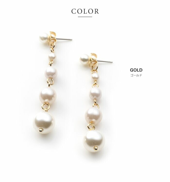 ピアス 金属アレルギー ニッケルフリー レディース 揺れる 5連 パール バックキャッチ cream dot ゆうパケット [ゴールド_ピアス]