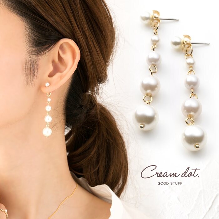 ピアス 金属アレルギー ニッケルフリー レディース 揺れる 5連 パール バックキャッチ cream dot ゆうパケット [ゴールド_ピアス]のレビュー