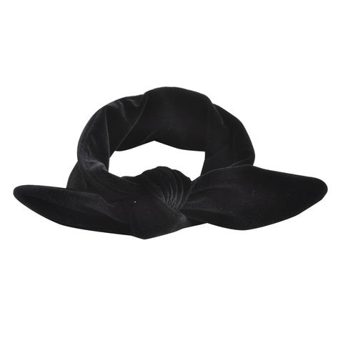 ヘアアクセサリー レディース ヘアターバン ヘアバンド ワイヤー入り ベロア ベルベット 無地 ヘ グレンチェック 調節可能 cream dot ゆうパケット [A:ブラック_ワンサイズ]