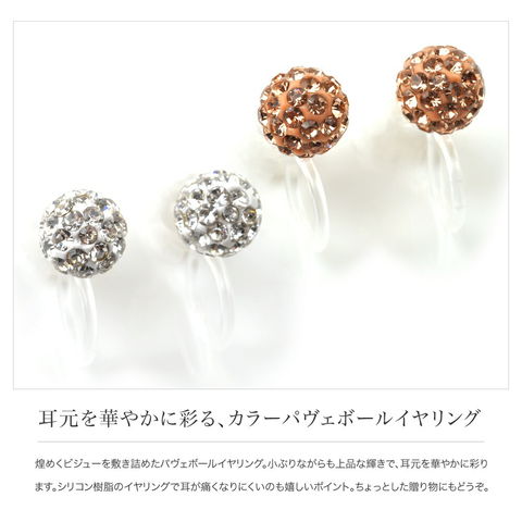 煌めくビジューを敷き詰めたパヴェボールイヤリング。