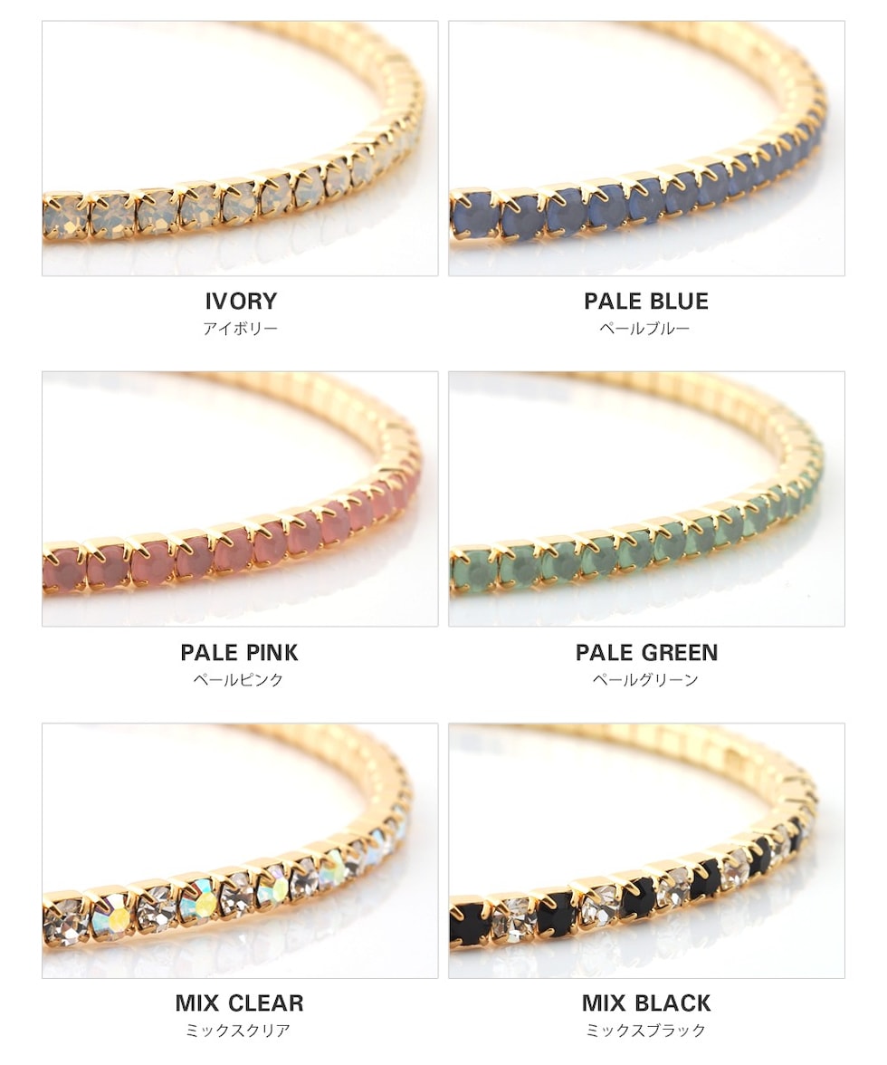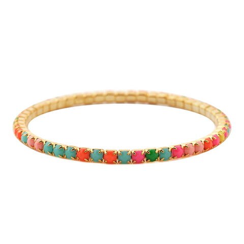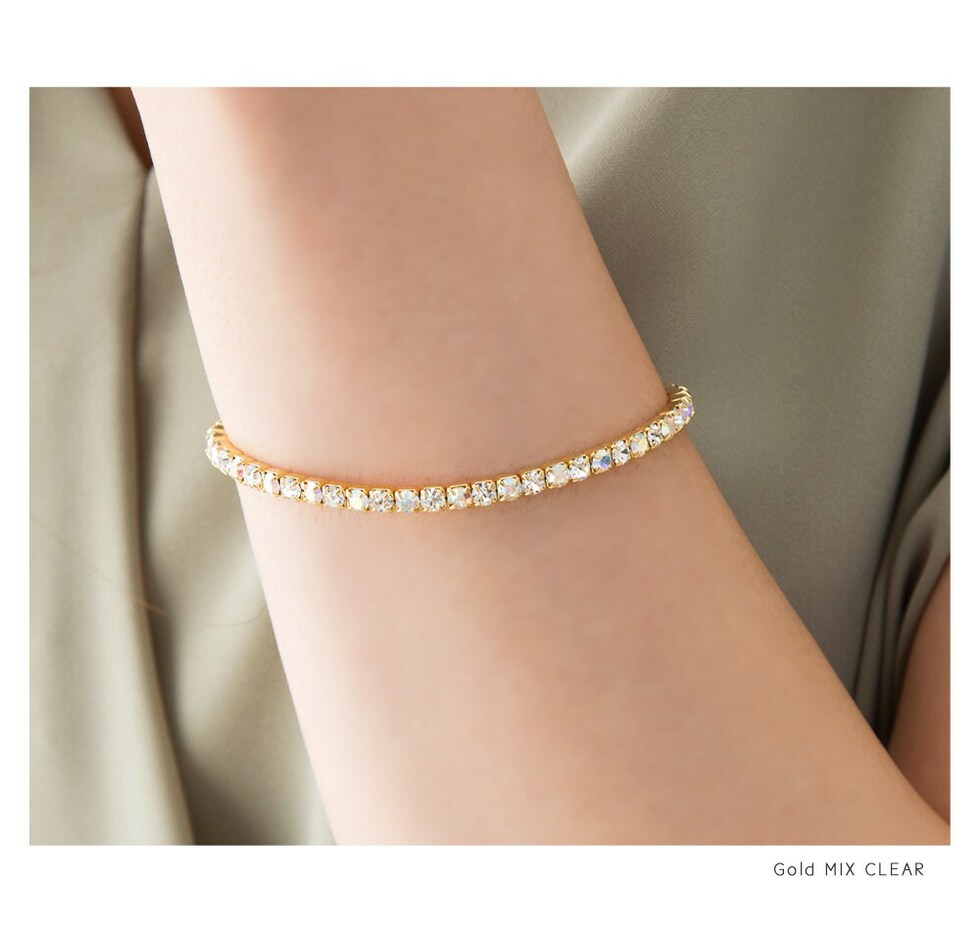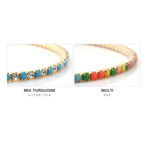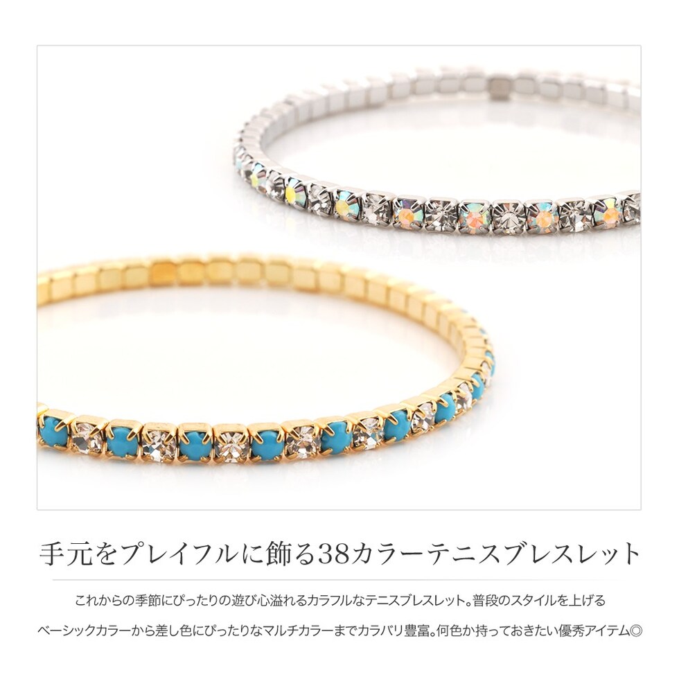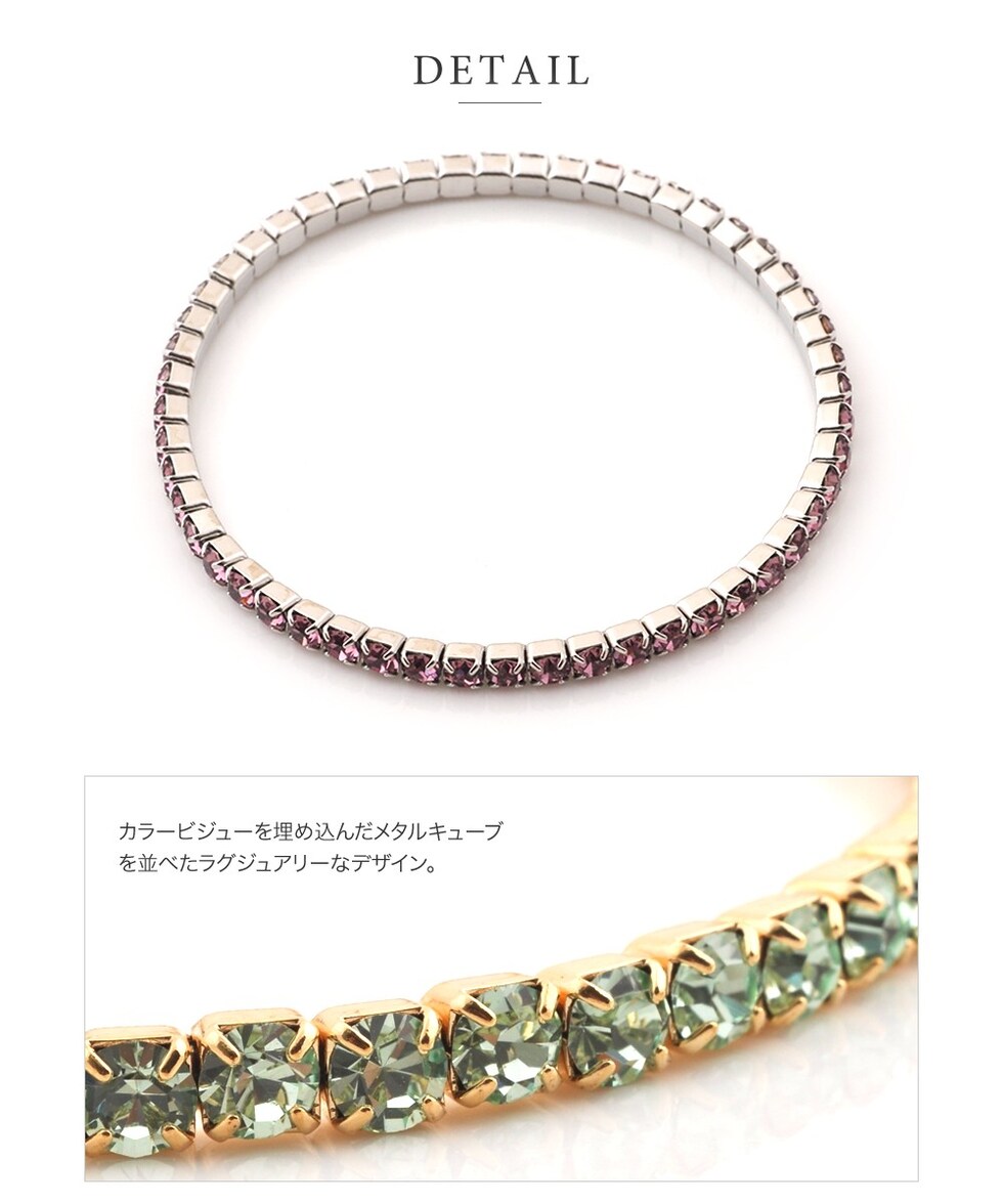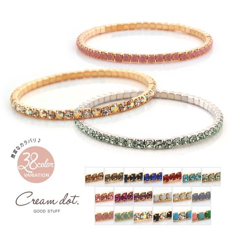 ブレスレット レディース テニス ビジュー キュービックジルコニア 伸縮可能 ライン ワイヤー ベーシック マルチカラー アクセサリー ジュエリー cream dot ゆうパケット [マルチ_ゴールド]