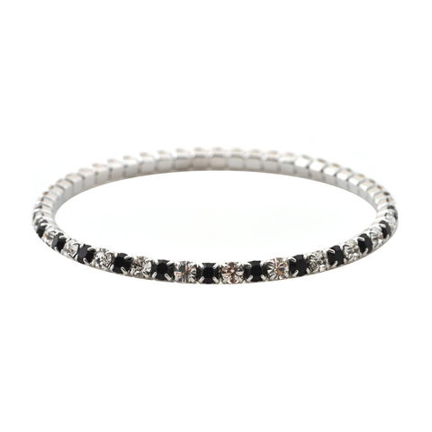 ブレスレット レディース テニス ビジュー キュービックジルコニア 伸縮可能 ライン ワイヤー ベーシック マルチカラー アクセサリー ジュエリー cream dot ゆうパケット [ミックスブラック_シルバー]