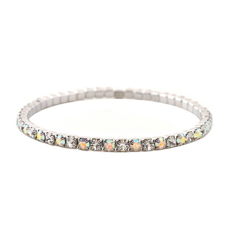 ブレスレット レディース テニス ビジュー キュービックジルコニア 伸縮可能 ライン ワイヤー ベーシック マルチカラー アクセサリー ジュエリー cream dot ゆうパケット [ミックスクリア_シルバー]
