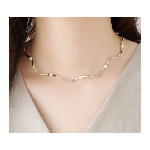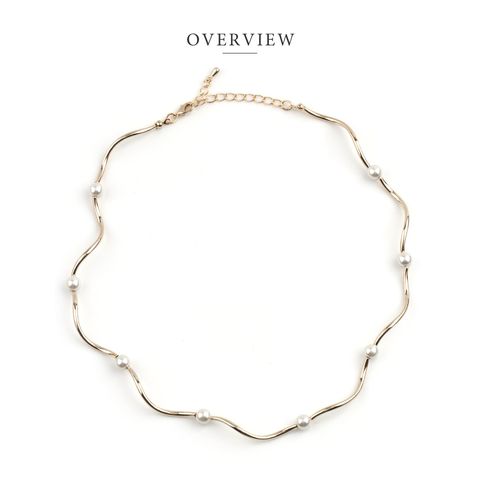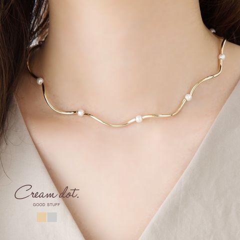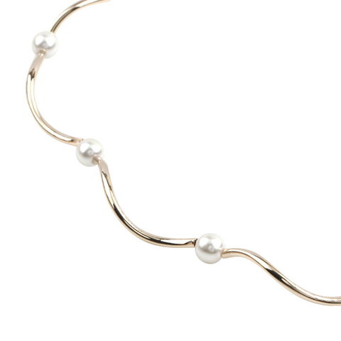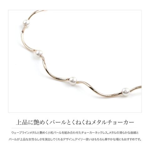 チョーカーネックレス。メタルの滑らかな曲線とパールが