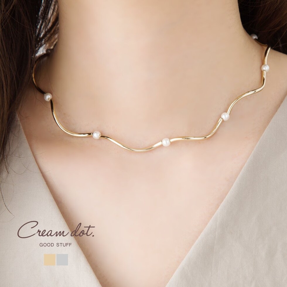 ネックレス レディース チョーカー ひねり ねじり ツイスト 小粒パール cream dot ゆうパケット [シルバー_ワンサイズ]