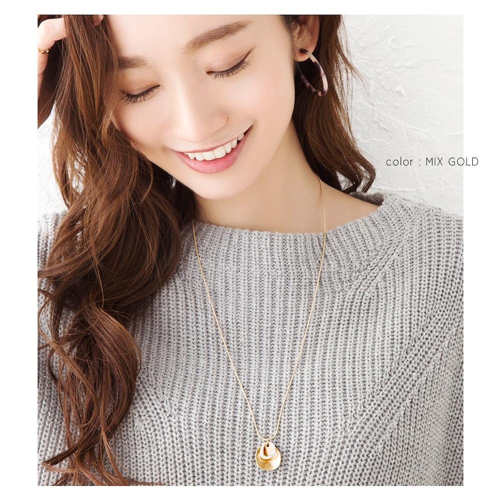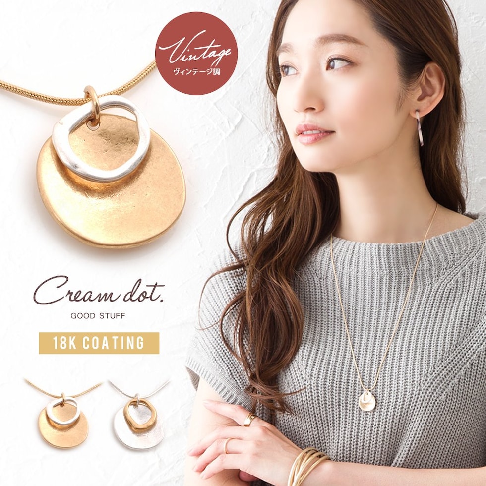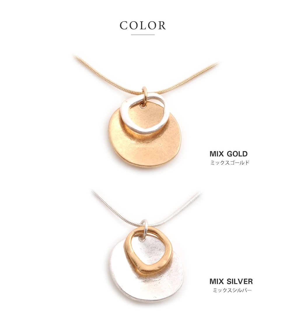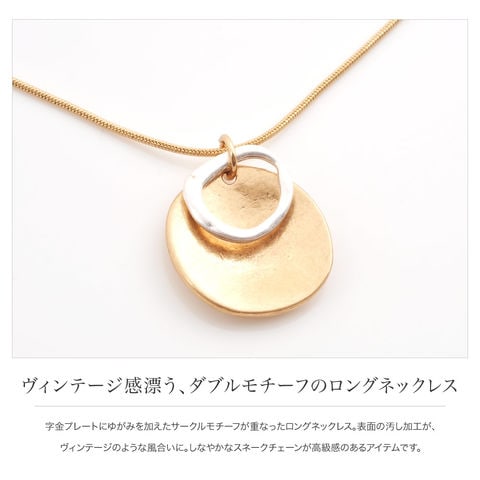 ネックレス 金属アレルギー ニッケルフリー レディース ロング チェーン ヴィンテージ調 艶消し コンビカラー バイカラー 変形 サークル メタル cream dot ゆうパケット [ミックスゴールド_ワンサイズ]