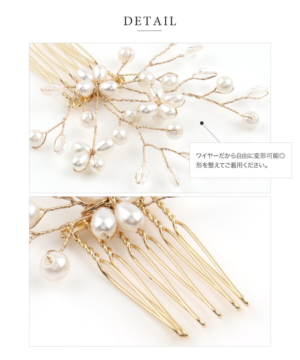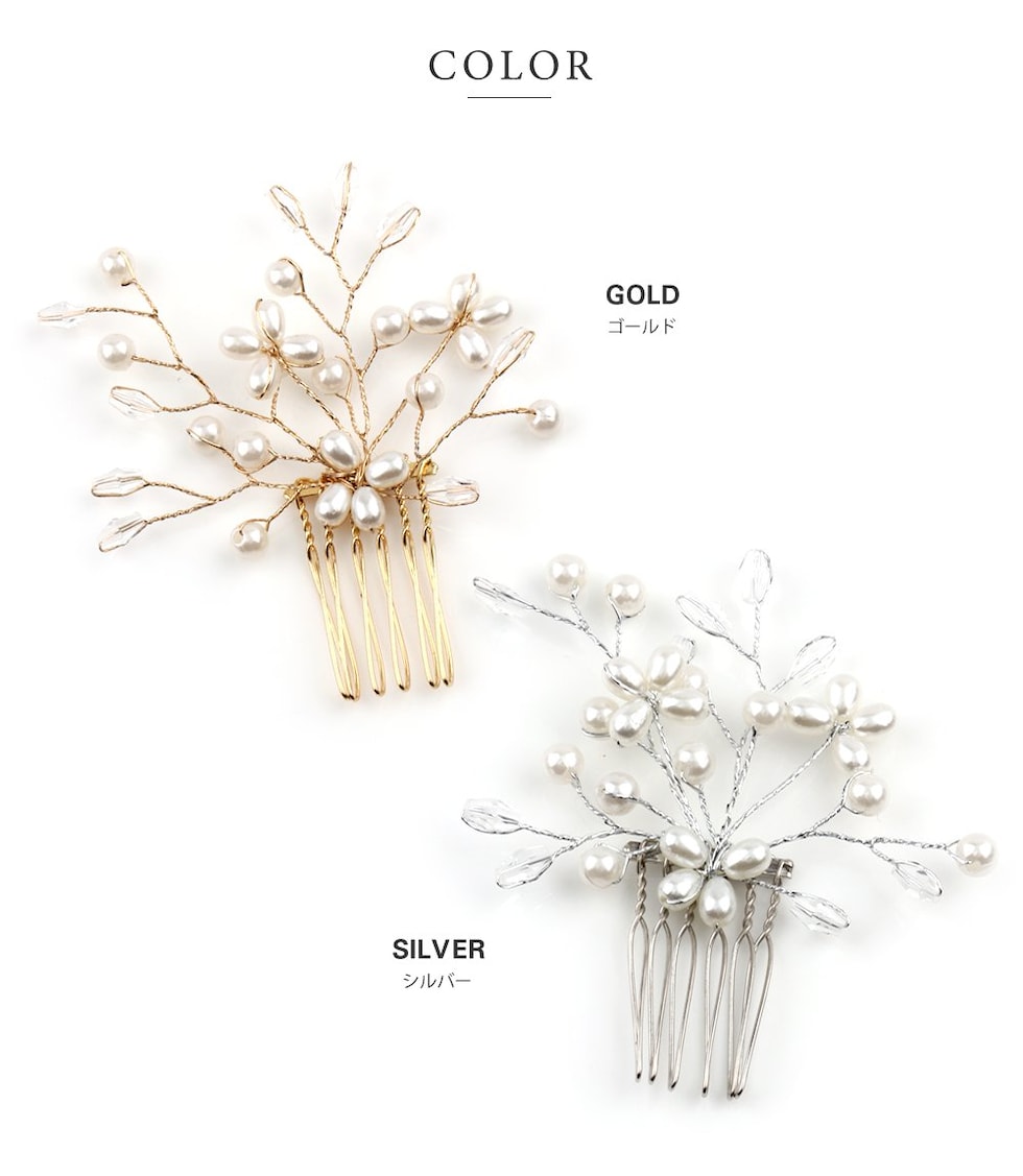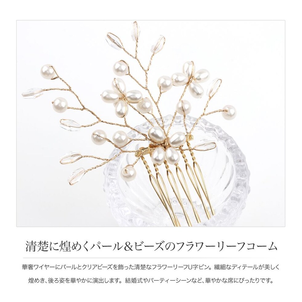 ヘアアクセサリー レディース ヘアコーム ヘアピン ヘアクリップ パール クリアビーズ cream dot ゆうパケット [ゴールド_ワンサイズ]