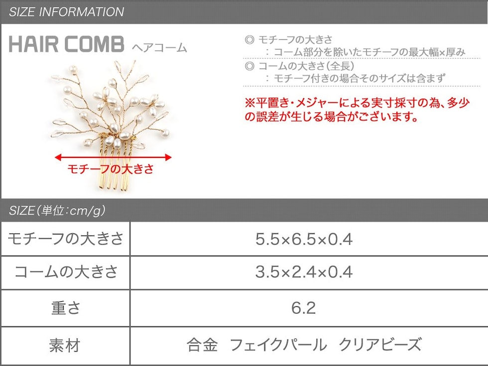 コームの大きさ 3.5cm×2.4cm×0.4cm