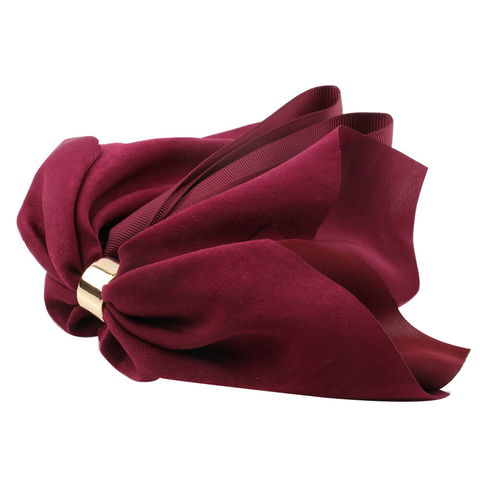 しっとりとした艶感のある起毛素材と、グログラン生地の2種類のリボンが重なる大きめバナナクリップ。