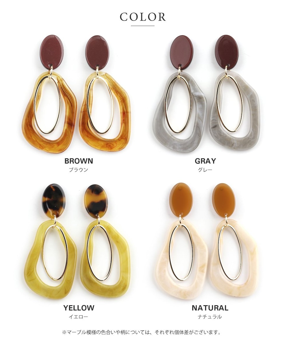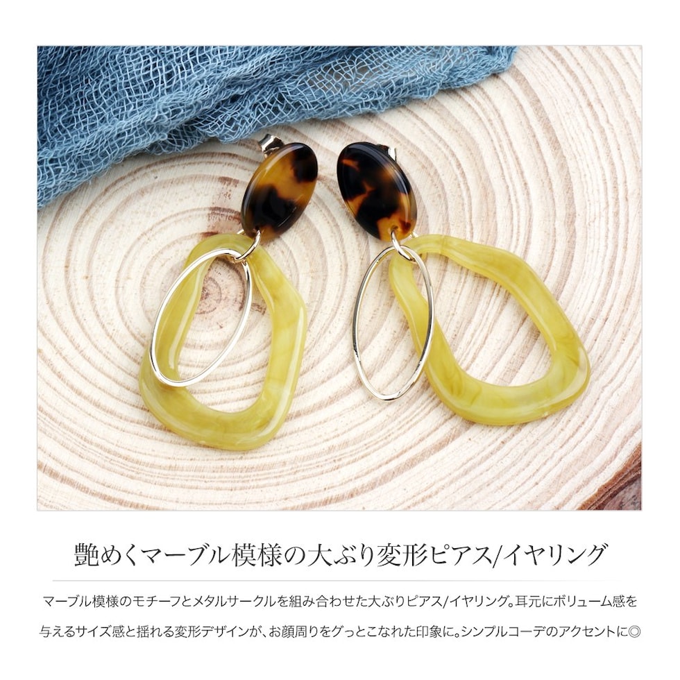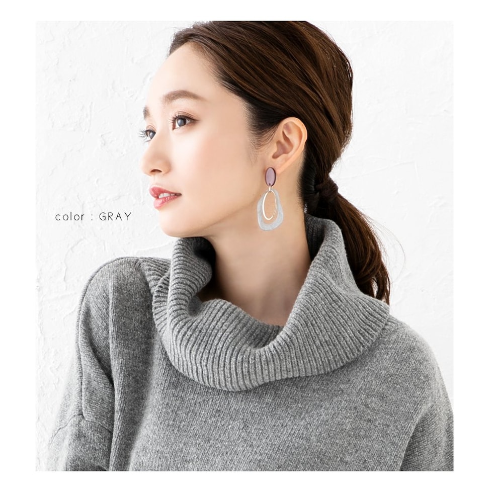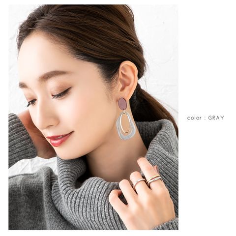 ピアス イヤリング レディース 揺れる ねじ式 スタッド 大ぶり 変形 マーブル メタル グレー cream dot ゆうパケット [グレー_ピアス]