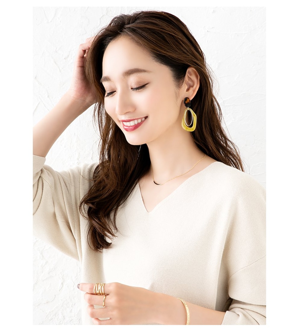 サイズ感と揺れる変形デザインが、お顔周りをグっと
