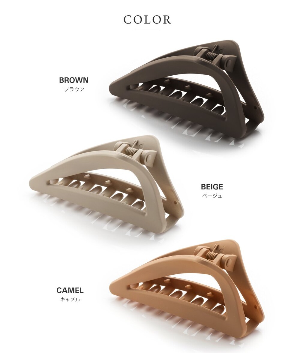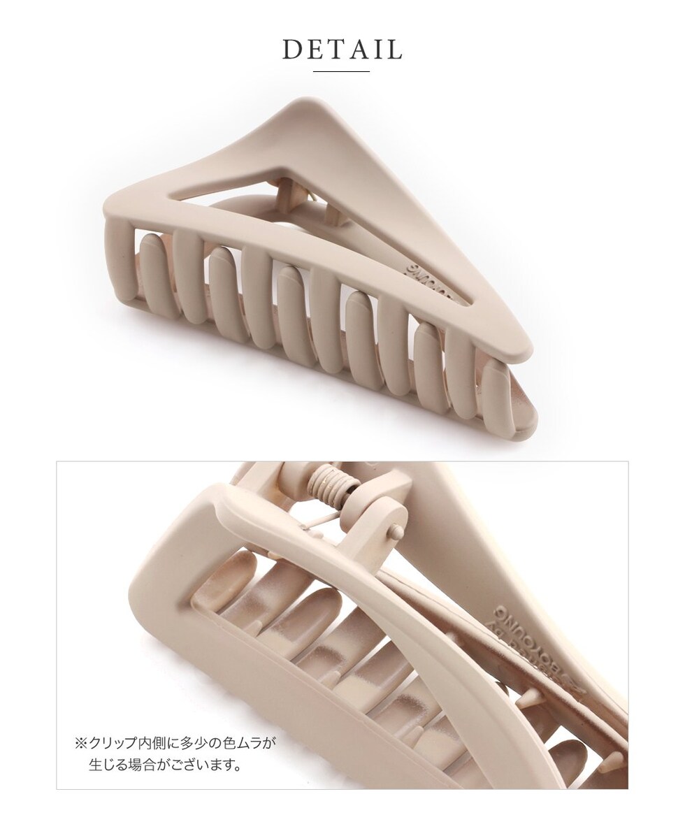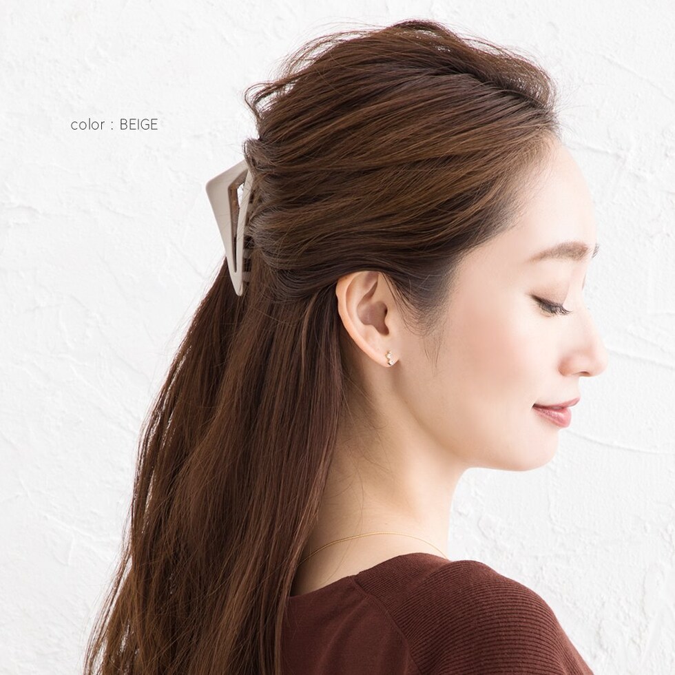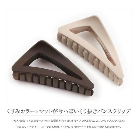 大人っぽいくすみカラーとマットな質感が今っぽいトライアングル型のバンスクリップ。