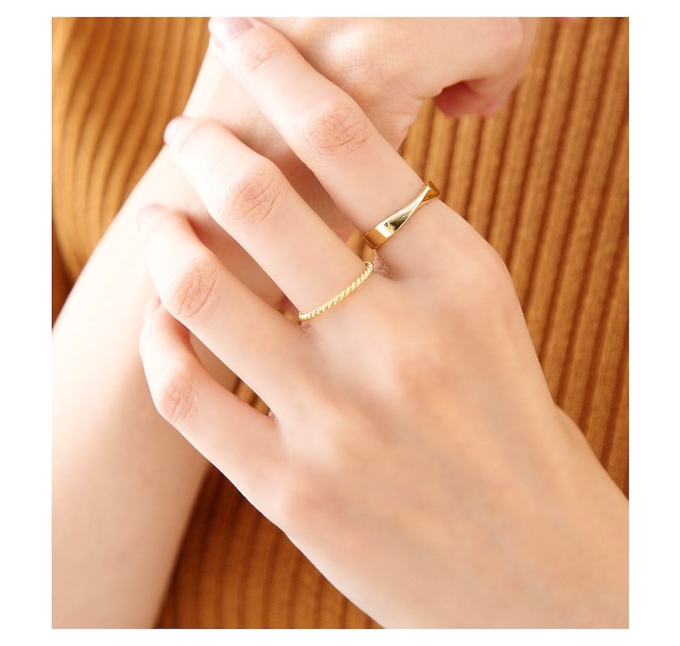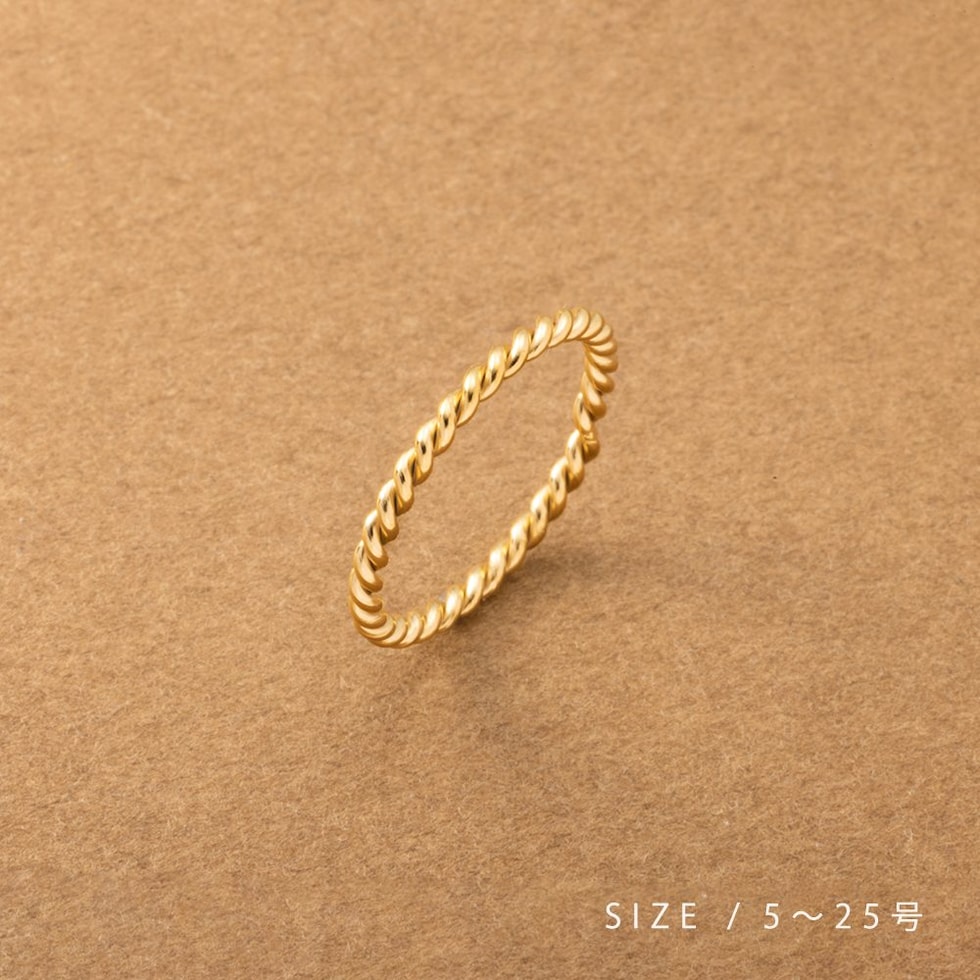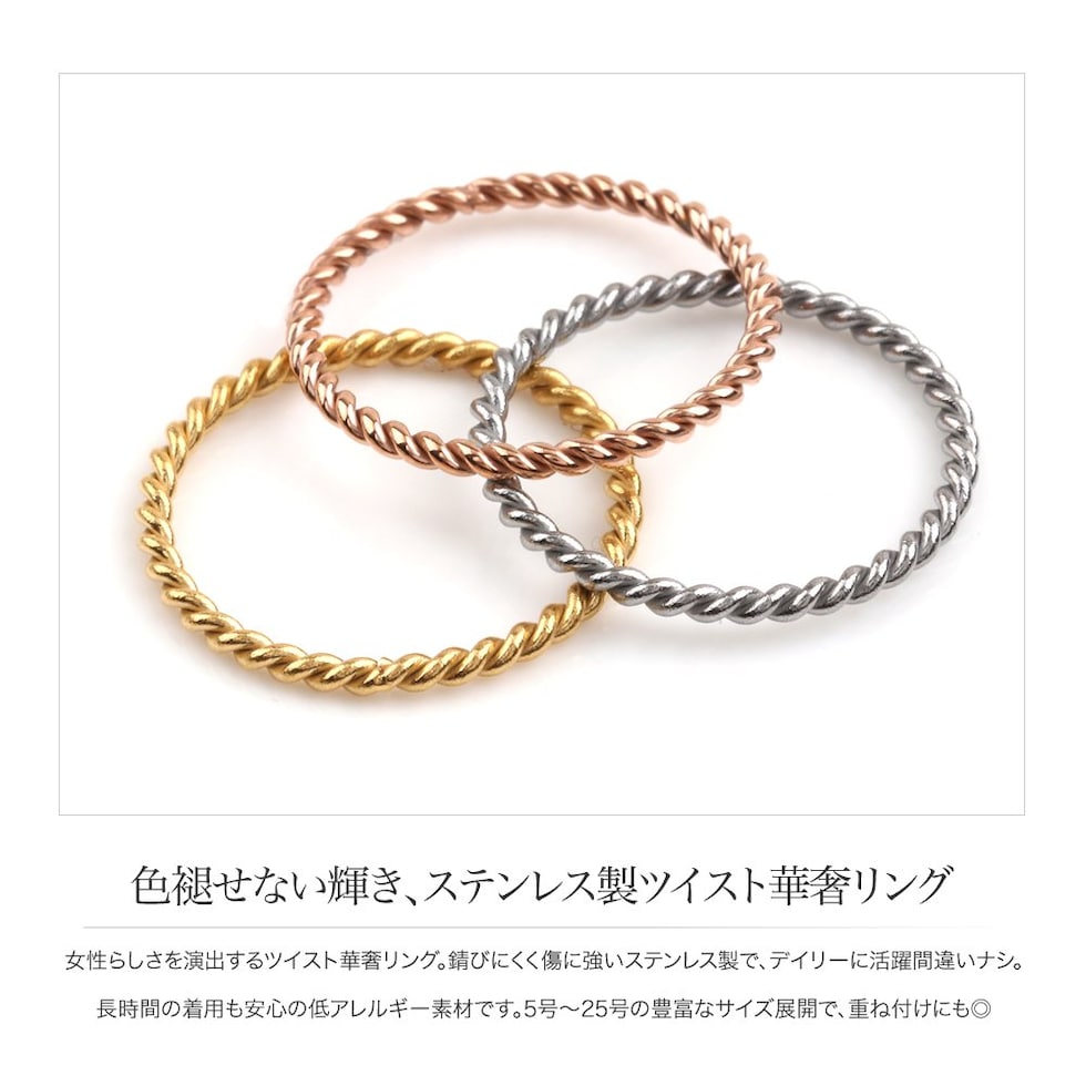 リング 指輪 ステンレス 金属アレルギー サージカルステンレス レディース ピンキーリング つけっぱなし メンズ 重ねづけ ツイスト cream dot ゆうパケット [ゴールド_9号]