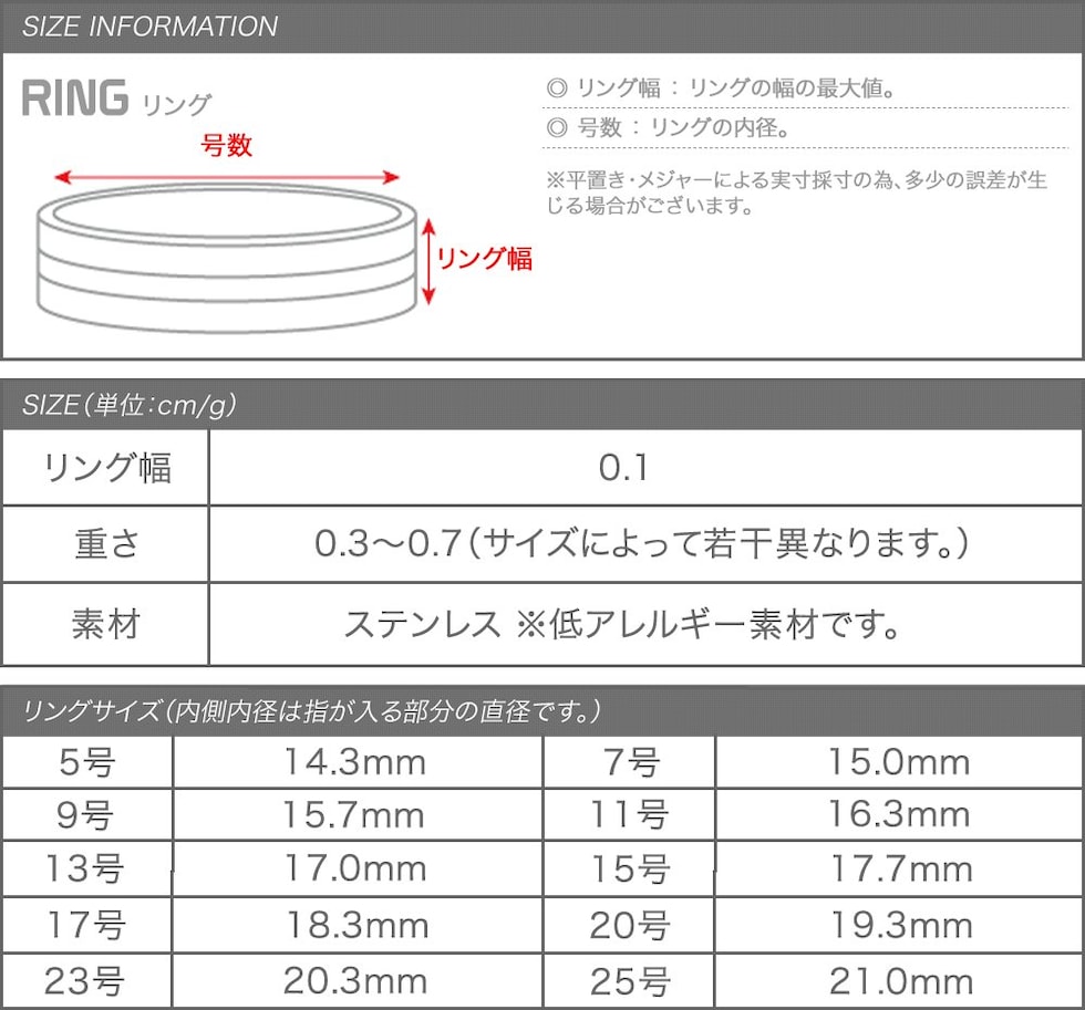 5号~25号の豊富なサイズ展開で、重ね付けにも◎