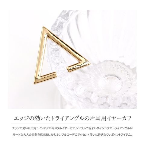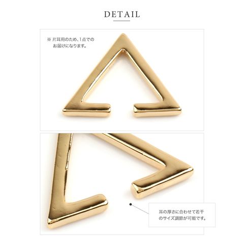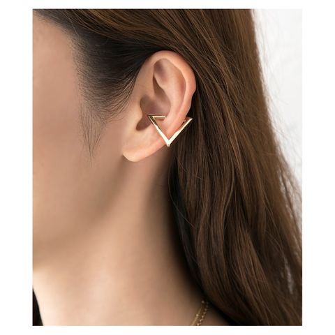 エッジの効いた三角ラインの片耳用メタルイヤーカフ。