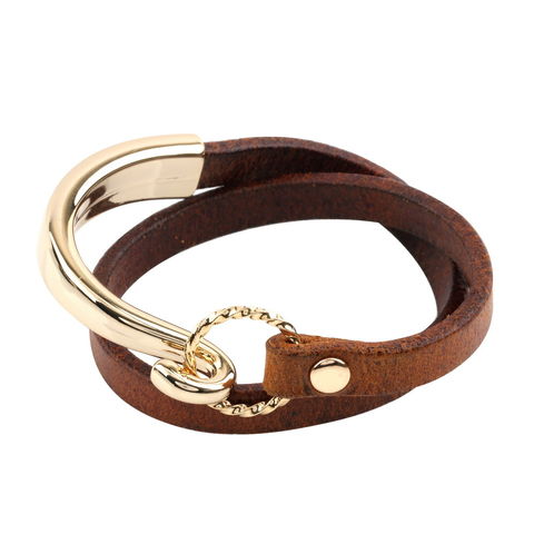ブレスレット レディース メタルフック リアルレザー 本革 牛革 2連 二連 レイヤード ブラック cream dot ゆうパケット [ブラウン_ワンサイズ]