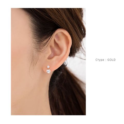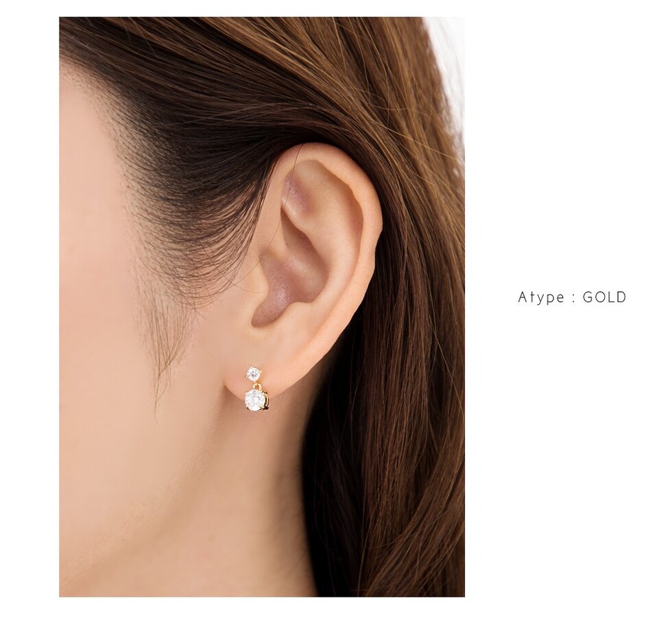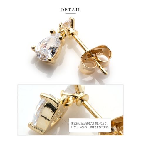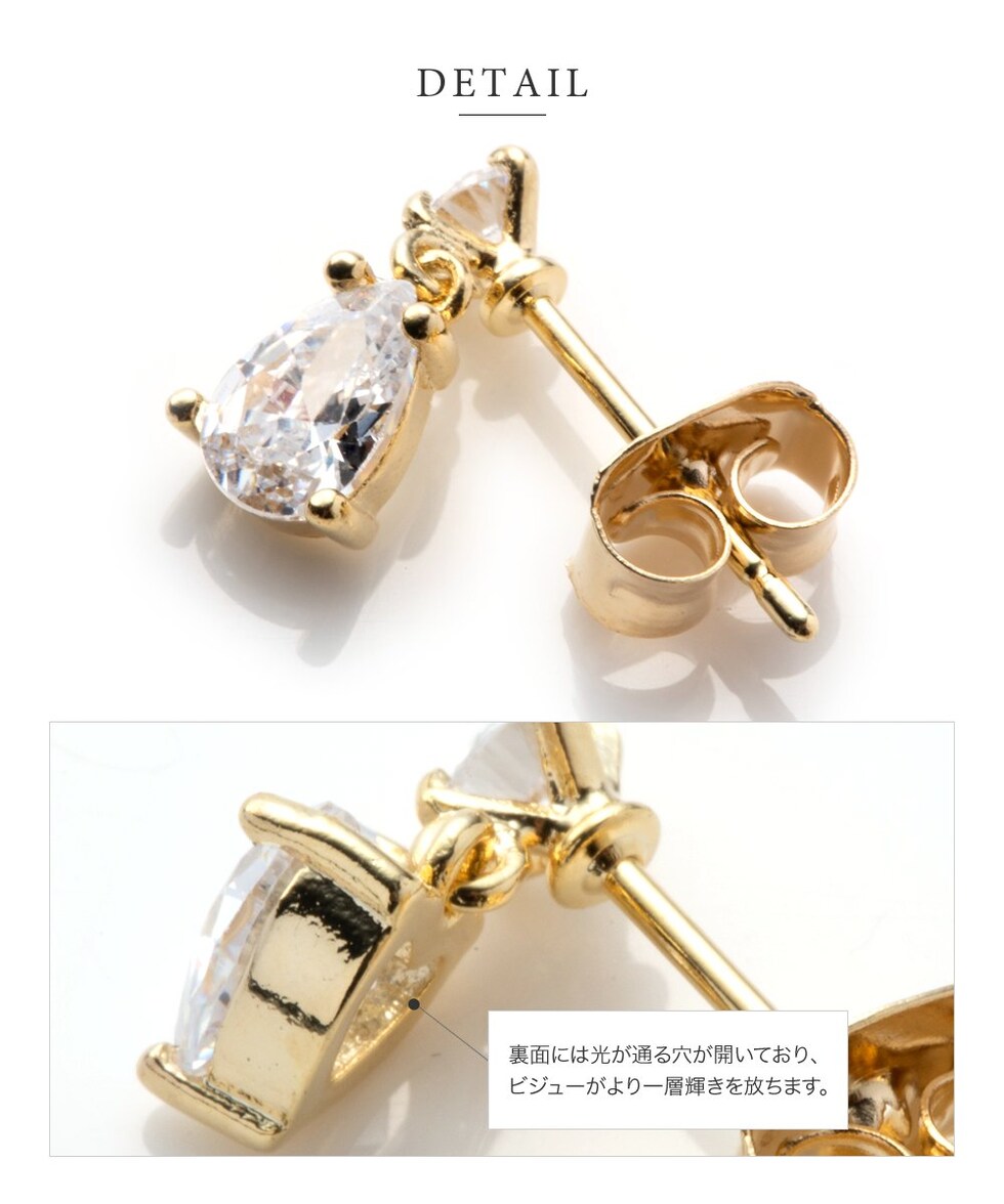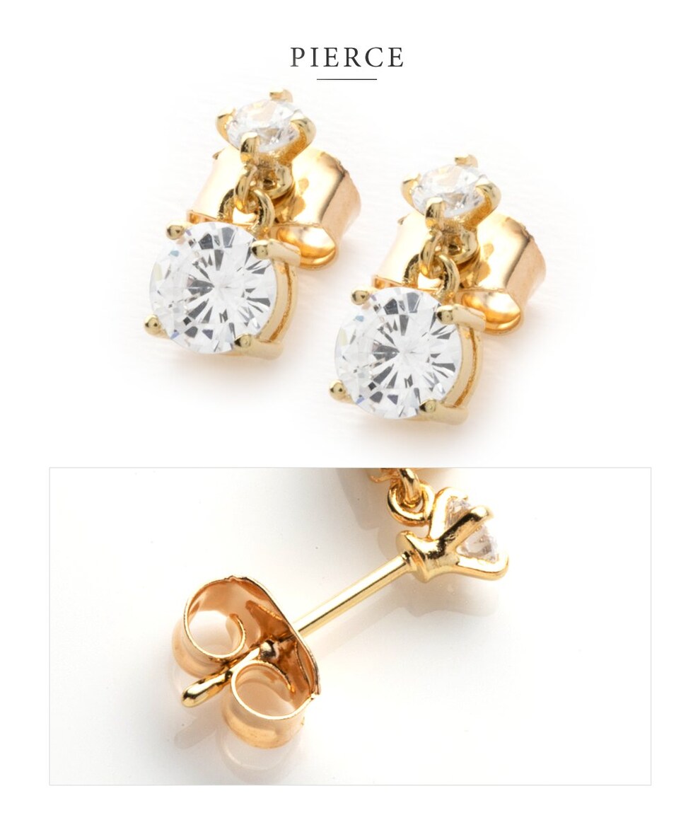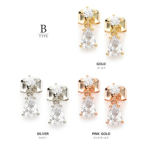 サークル、ドロップ、ハートの3タイプから選べる、シンプルなビジューピアス/イヤリング。