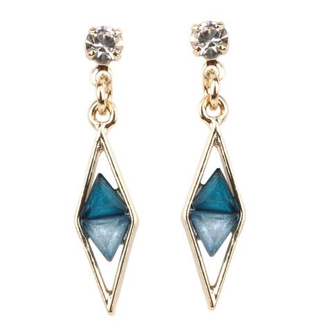 イヤリング ピアス レディース 揺れる ビジュー ひし形 メタル バイカラー cream dot ゆうパケット [ネイビー_イヤリング]